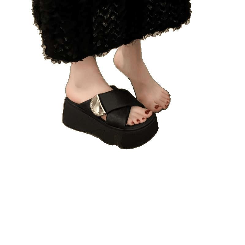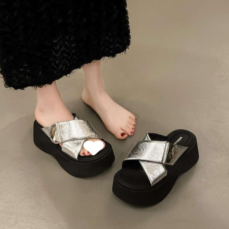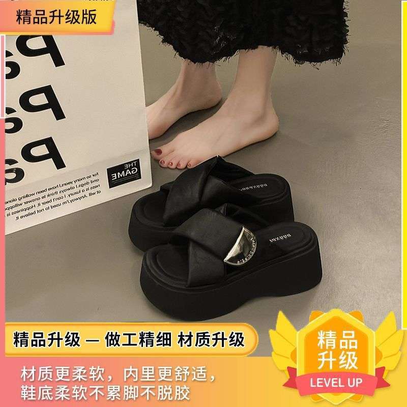 Крутые шлепанцы на толстой подошве 8 см, женская летняя обувь 2025, новые маленькие сандалии на мягкой подошве, увеличивающие рост