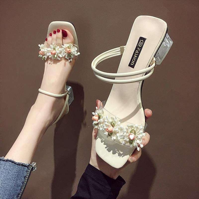 Летние сандалии для девочки 2025 новые фея ветер носить мода цветок высокий каблук слово два носить толстый каблук крутые шлепанцы