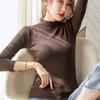 Женский свитер на осень-зиму с воротником-стойкой, базовый джемпер с длинными рукавами, вязаные пуловеры, полуводолазка, тонкие женские вязаные топы