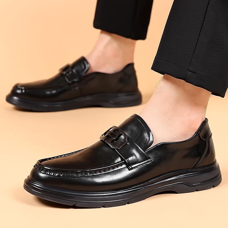 Мужская обувь 2025 весна круглый носок конская пряжка повседневная обувь Doudou на одной педали трендовая универсальная из мягкой кожи деловая кожаная обувь