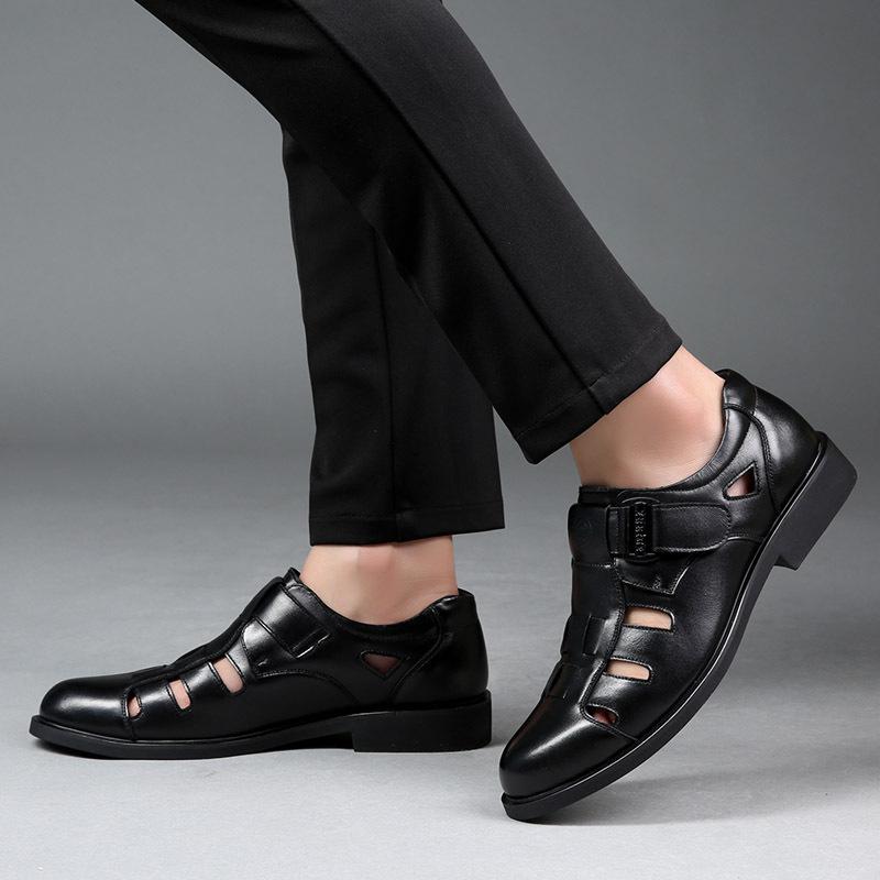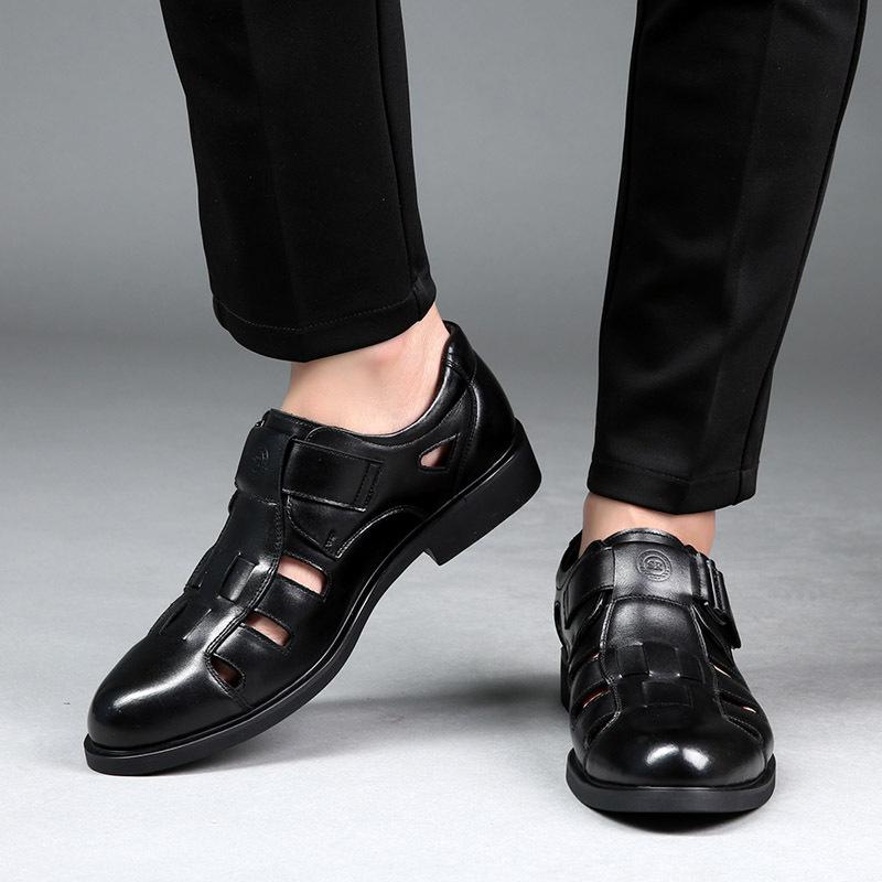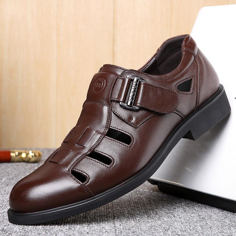 Мужские сандалии лето 2025 новые деловые повседневные кожаные туфли с перфорацией, нескользящие кожаные туфли для папы среднего возраста