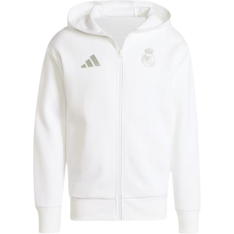 Adidas SS24 Real Madrid Series Logo Удобная модная куртка с капюшоном и длинным рукавом Мужская куртка белого цвета IT3805