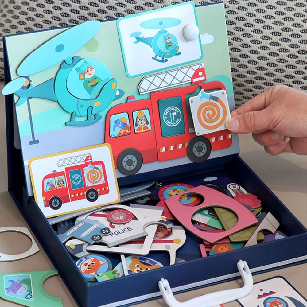 Wood Magnetic Stickers Toys Cartoon Pattern Montessori Games Jigsaw Puzzle Early Educational