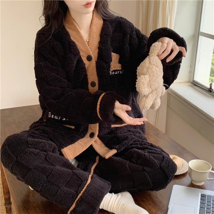 Коралловые бархатные пижамы женские зимние утепленные большие размеры теплые новые осенние и зимние костюмы можно носить на улице — купить товар онлайн с бесплатной доставкой по всему миру!