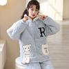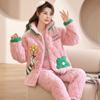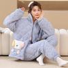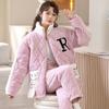 Коралловая бархатная трехслойная стеганая куртка и пижама для женщин Зимний фланелевой домашний костюм с очень толстой теплой молнией и бархатом