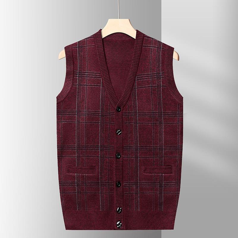 Кардиган Жилет Осень Мужской Без рукавов Однобортный Жилет Вязаный Утепленный Теплый Мужской Жилет.