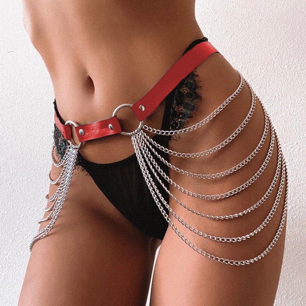 Портупея для ног женская сексуальная кожаная подвязка на бедро с цепочкой готическая экзотическая аксессуары для костюма модный кожаный пояс на талию — купить товар онлайн с бесплатной доставкой по всему миру!