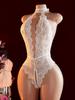 Женское эротическое нижнее белье с глубоким V-образным вырезом на спине, прозрачное цветочное кружево, соблазнительное ночное платье, тедди, бэбидолл, нижнее белье без ластовицы