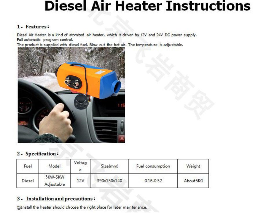 5000 Вт 12 В Воздушный дизельный Отопитель для Автомобиля Грузовика Автодома Лодки Автобуса Фургона