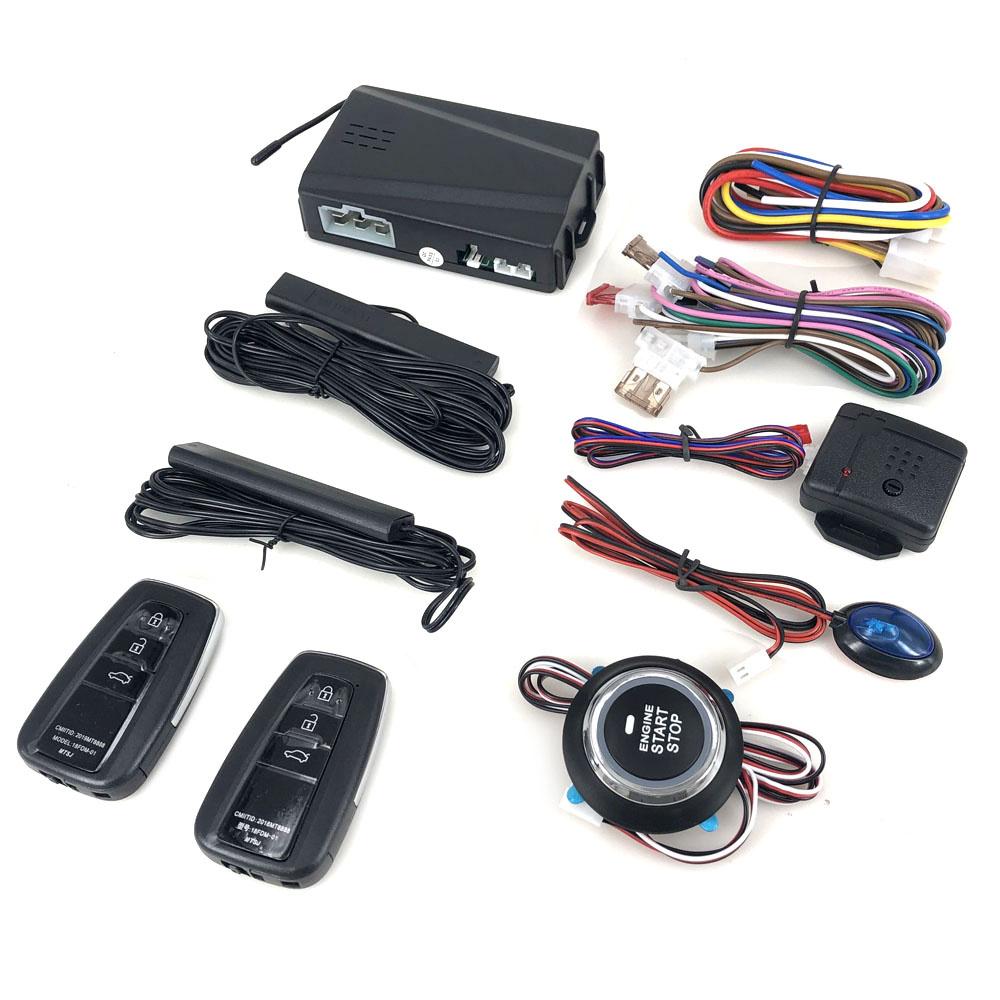 Особенности продукта: Запуск/ выключение одной кнопкой, дистанционный дистанционный запуск, разблокировка и блокировка входа без ключа PKE, обнаружение масляного насоса, распознавание личности, противоугонная сигнализация, замок для вождения, автоматизация центрального замка, магистраль дистанционного управления (оригинальный автомобиль должен иметь багажник с двигателем), двойные дверные мигающие огни, функция вибрационной сигнализации, напоминание о вспышке сигнала о взломе и т. Д.