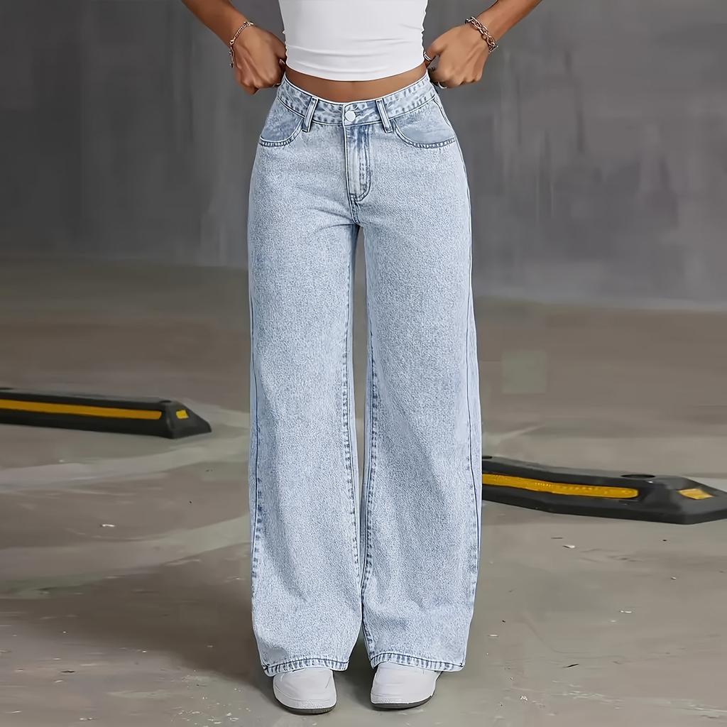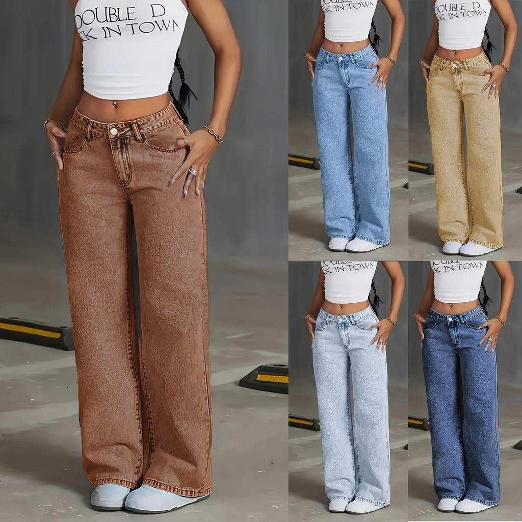 Женские джинсы средней посадки, вареные, модные, универсальные, прямые брюки