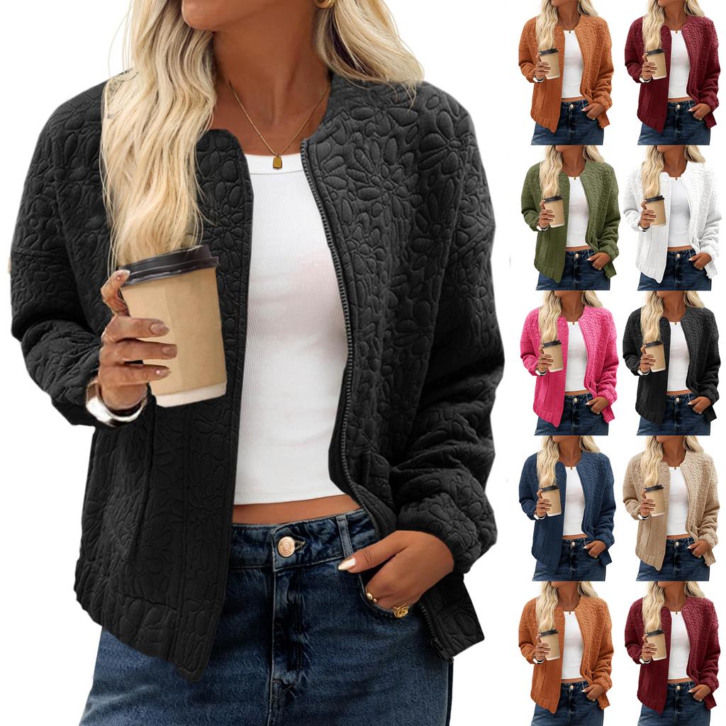 Женская модная зимняя повседневная куртка на молнии, однотонная куртка