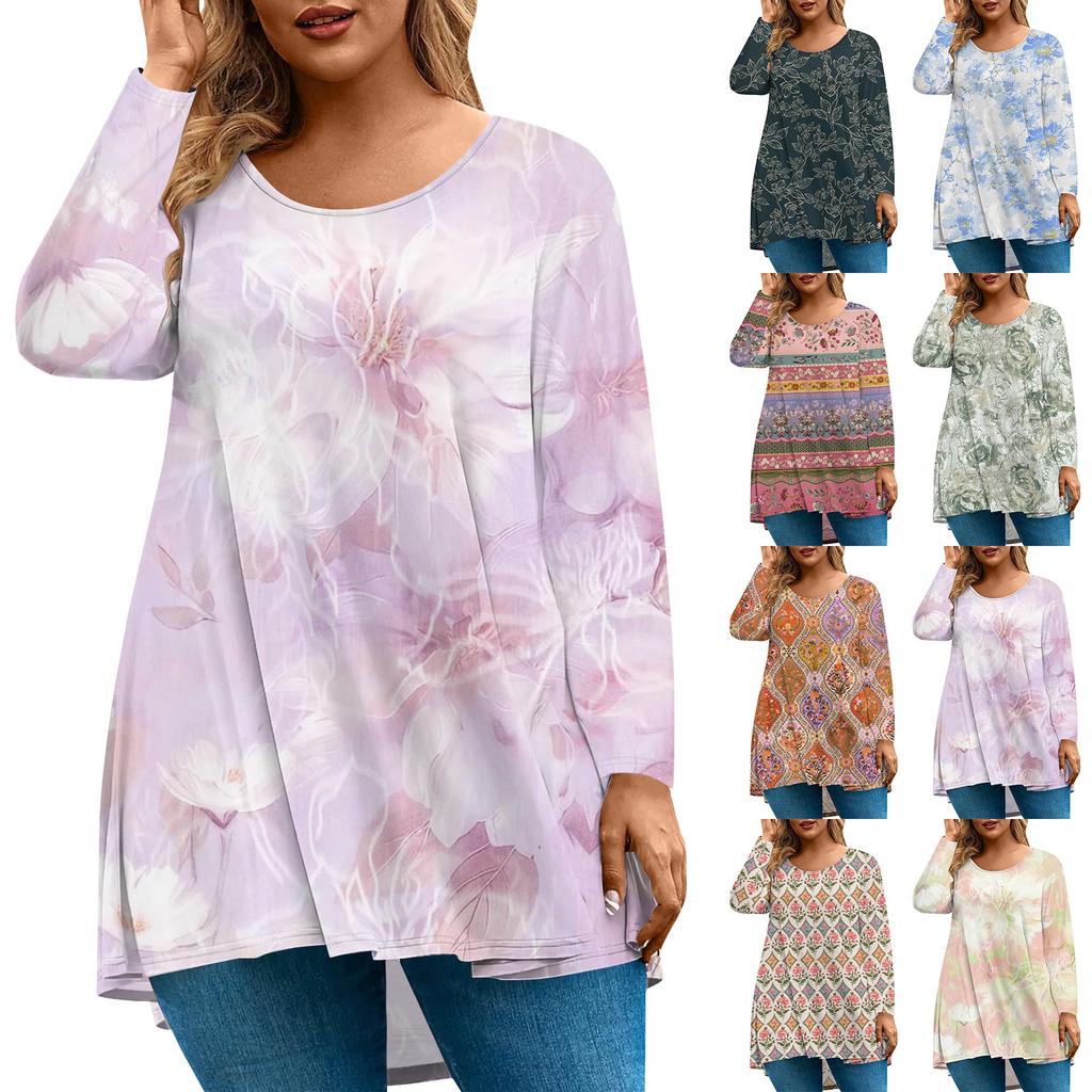 Женская мода большого размера с круглым вырезом и длинным рукавом, повседневный свободный пуловер с принтом