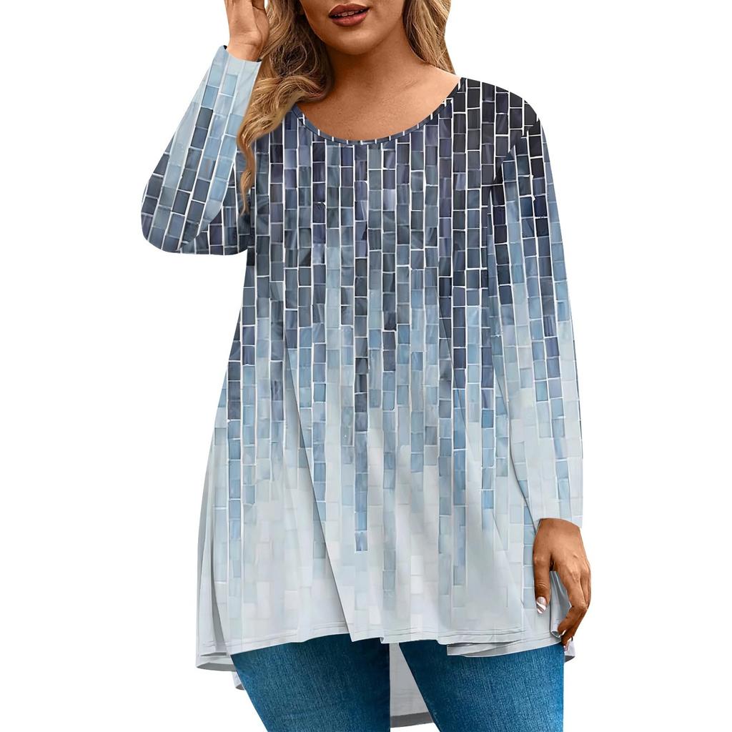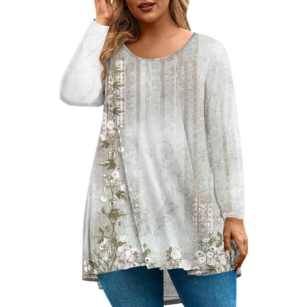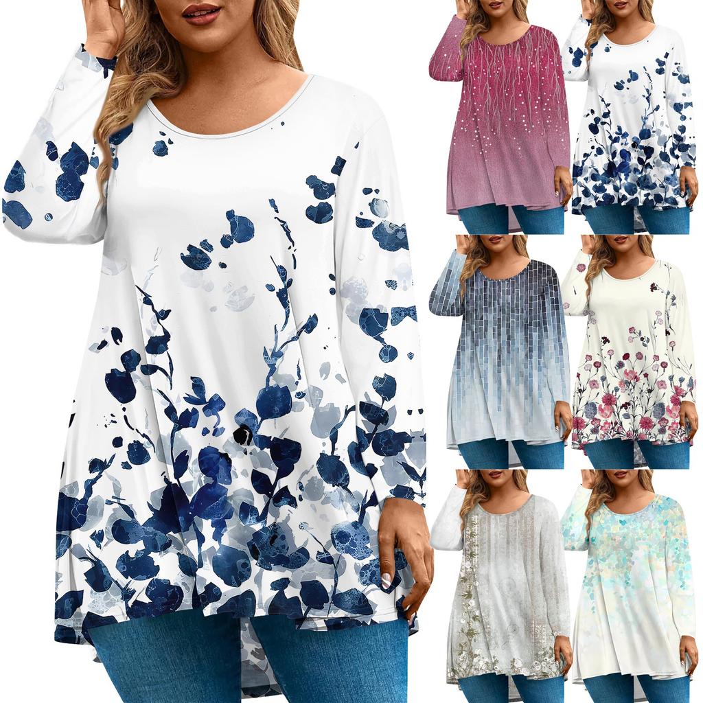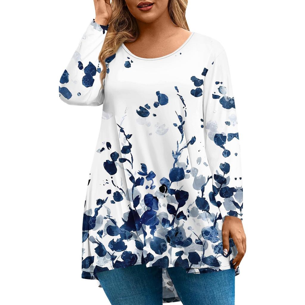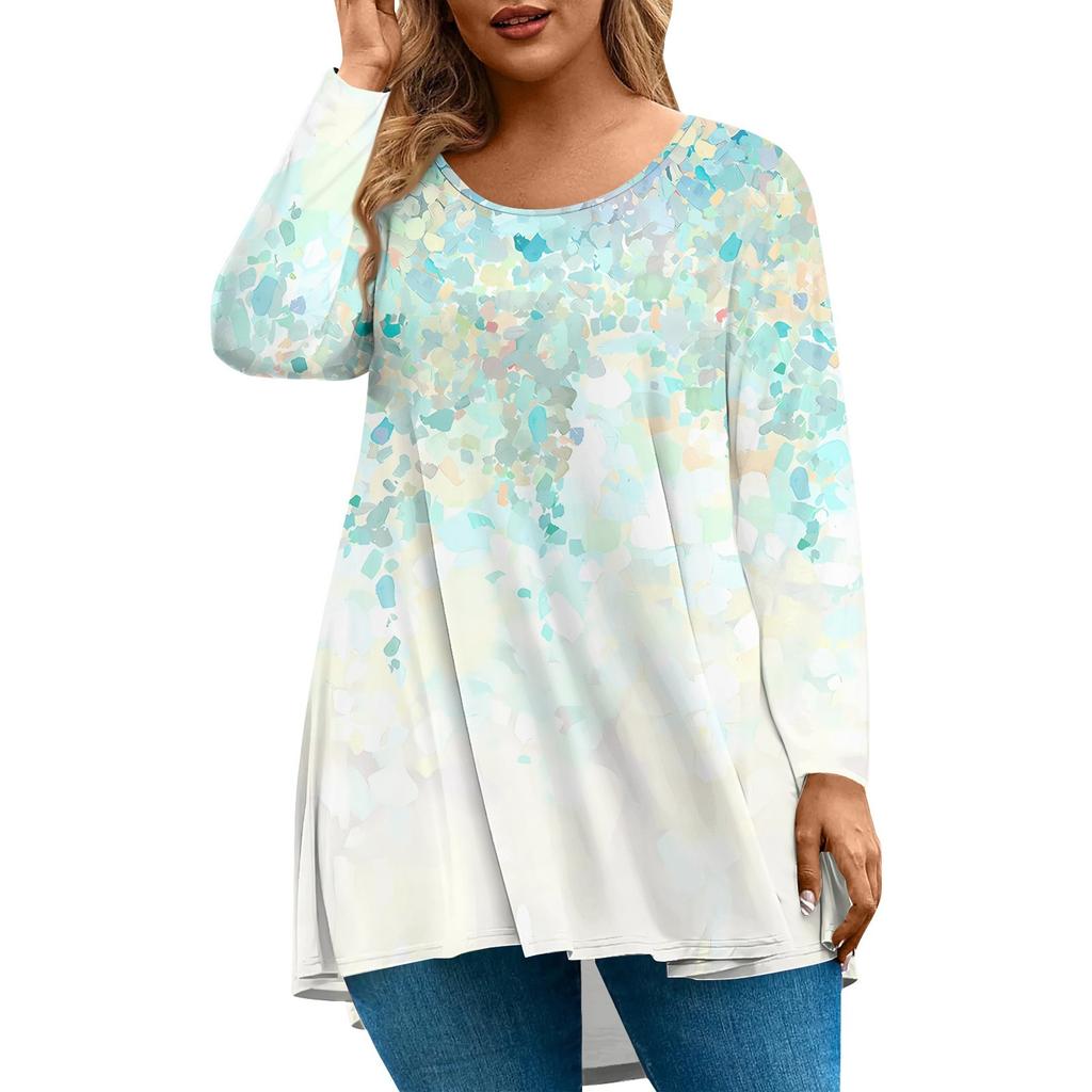 Женская мода большого размера с круглым вырезом и длинным рукавом, повседневный свободный пуловер с принтом