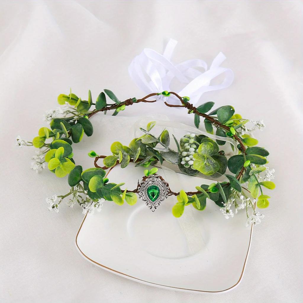 1 шт. Сказочная корона из цветов и листьев, Головной убор принцессы-эльфа, Головной убор эльфа, Косплей, Костюм на Хэллоуин, Фотосессия, Свадьба