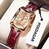 Топ Роскошный Бренд Квадратные Женские Часы Кварцевые Водонепроницаемые Кожа Розовое Золото Женские Наручные Часы