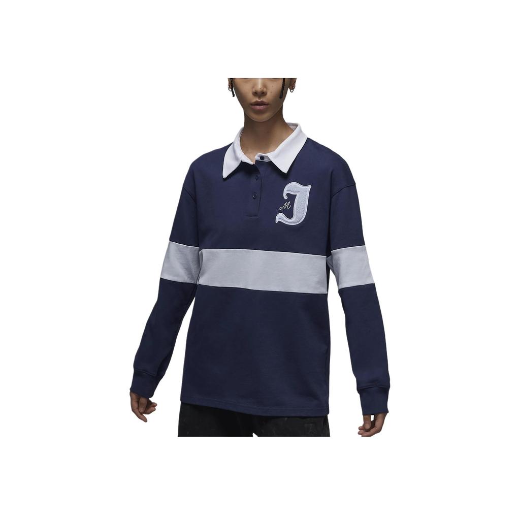 Jordan Удобная, приятная для кожи свободная рубашка поло с длинным рукавом, женские топы, темно-синего цвета FV7183-410