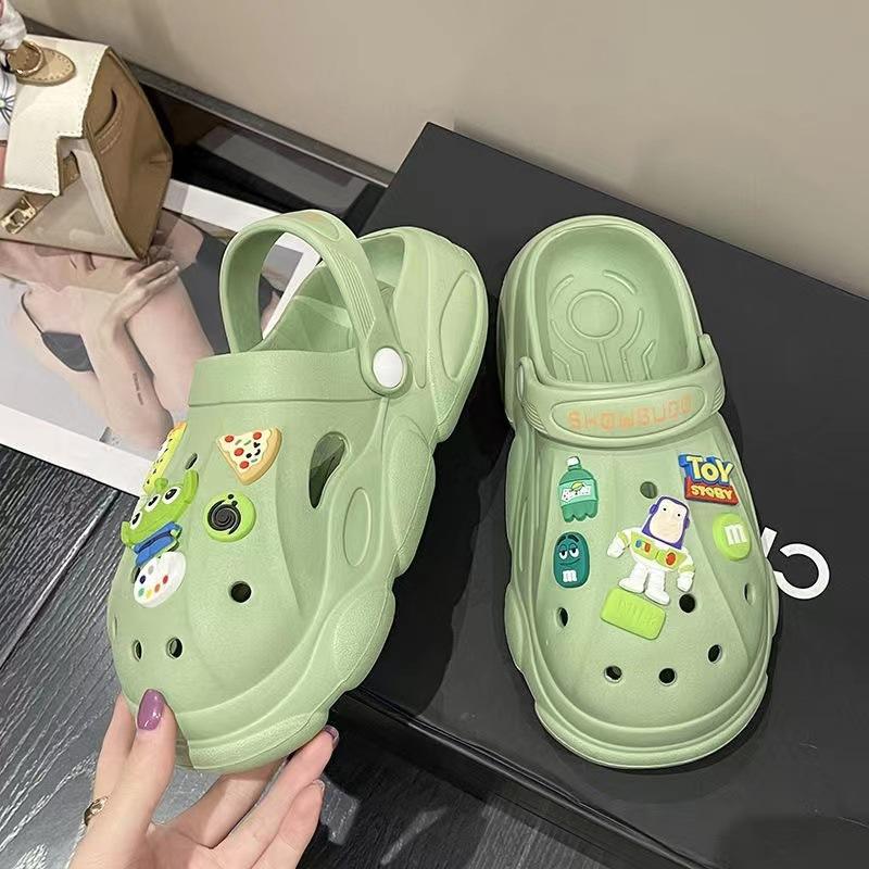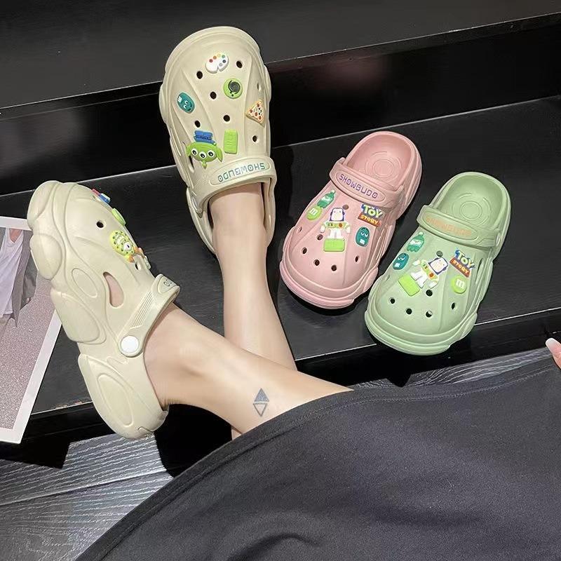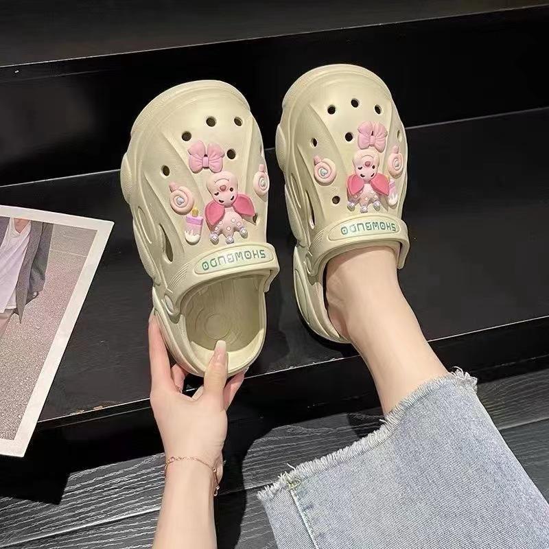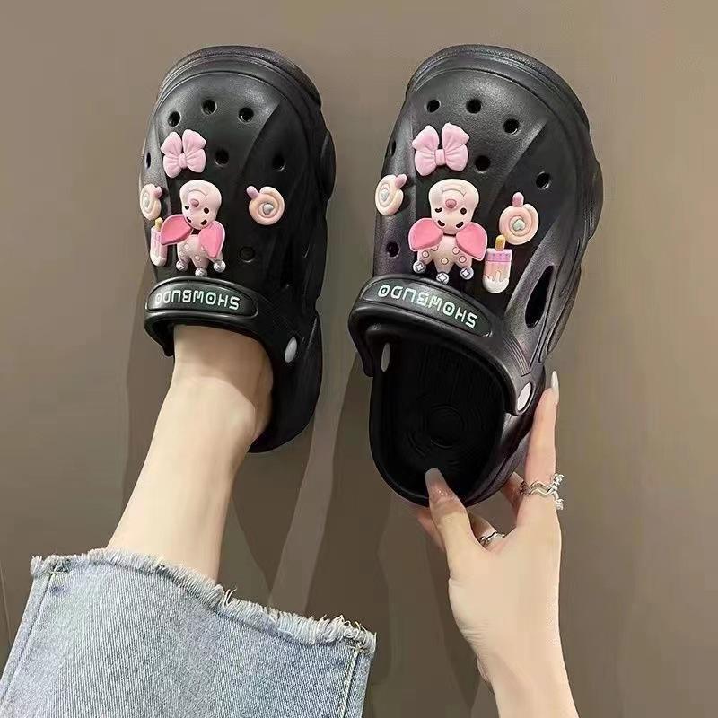 Дырявые туфли, банный свет, милые тапочки, женская обувь, новые универсальные сандалии на платформе, полушлепки, пляжная женская обувь