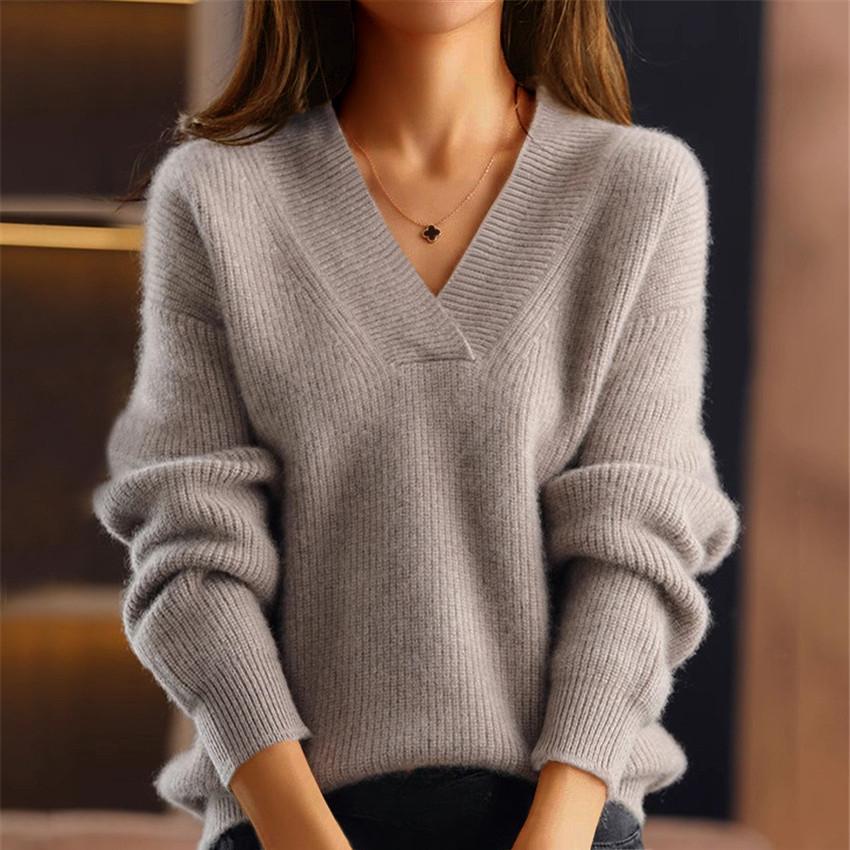 Мягкий трикотажный пуловер с V-образным вырезом для осени и зимы