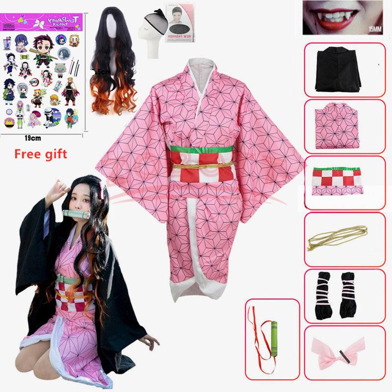 Аниме Demon Slayer Nezuko Косплэй костюм кимоно Kimetsu No Yaiba Kamado Nezuko костюм парик женское кимоно для девочек униформа одежда — купить товар онлайн с бесплатной доставкой по всему миру!