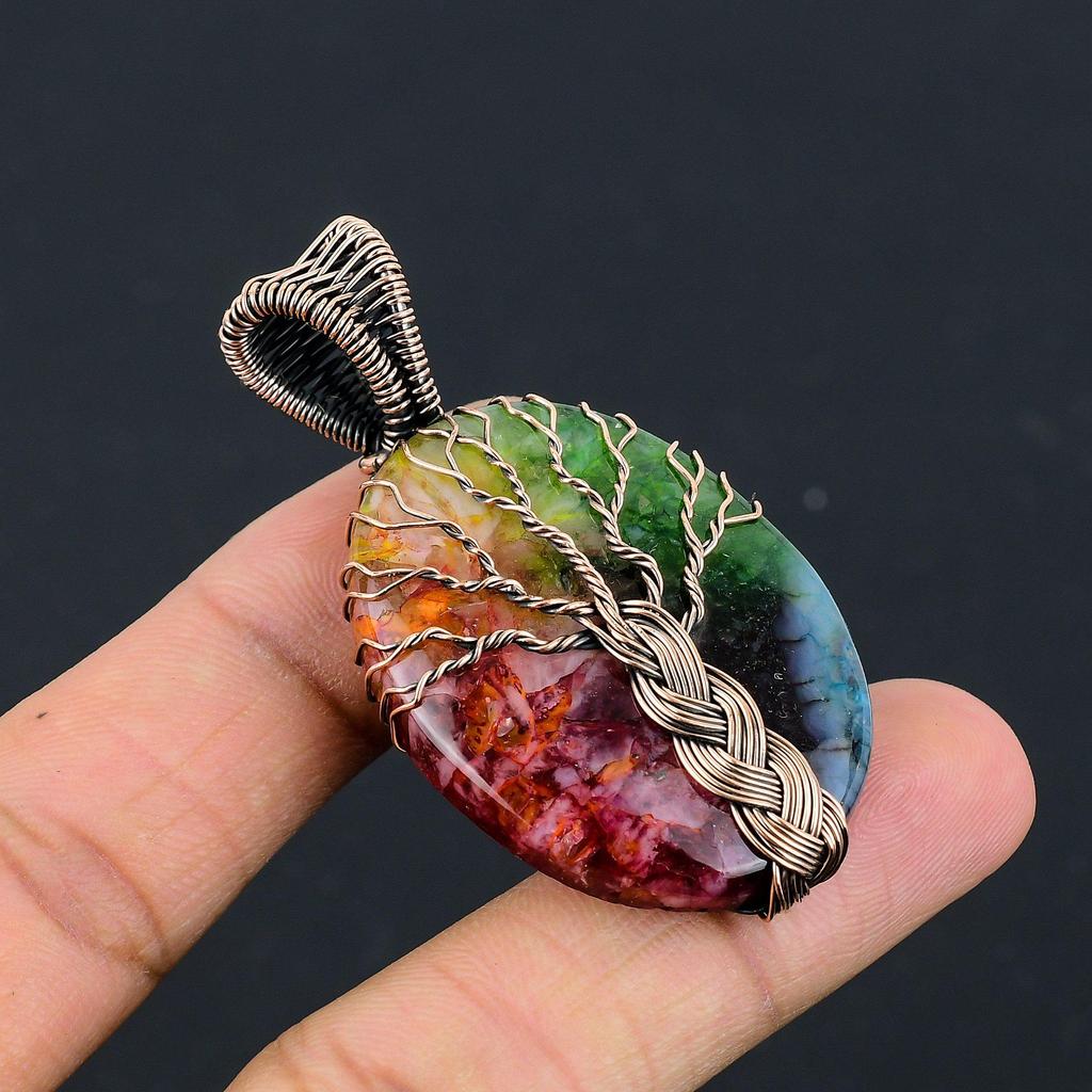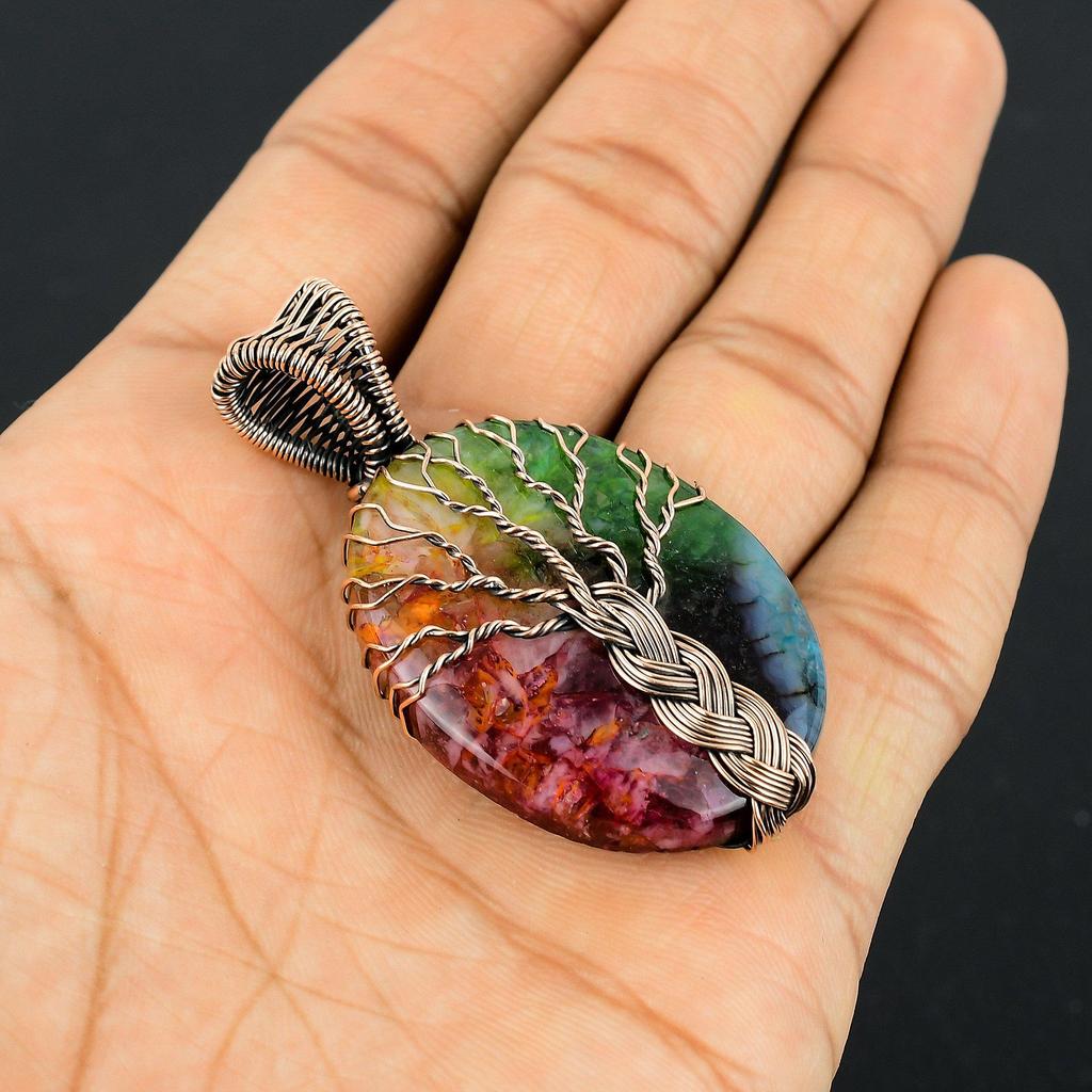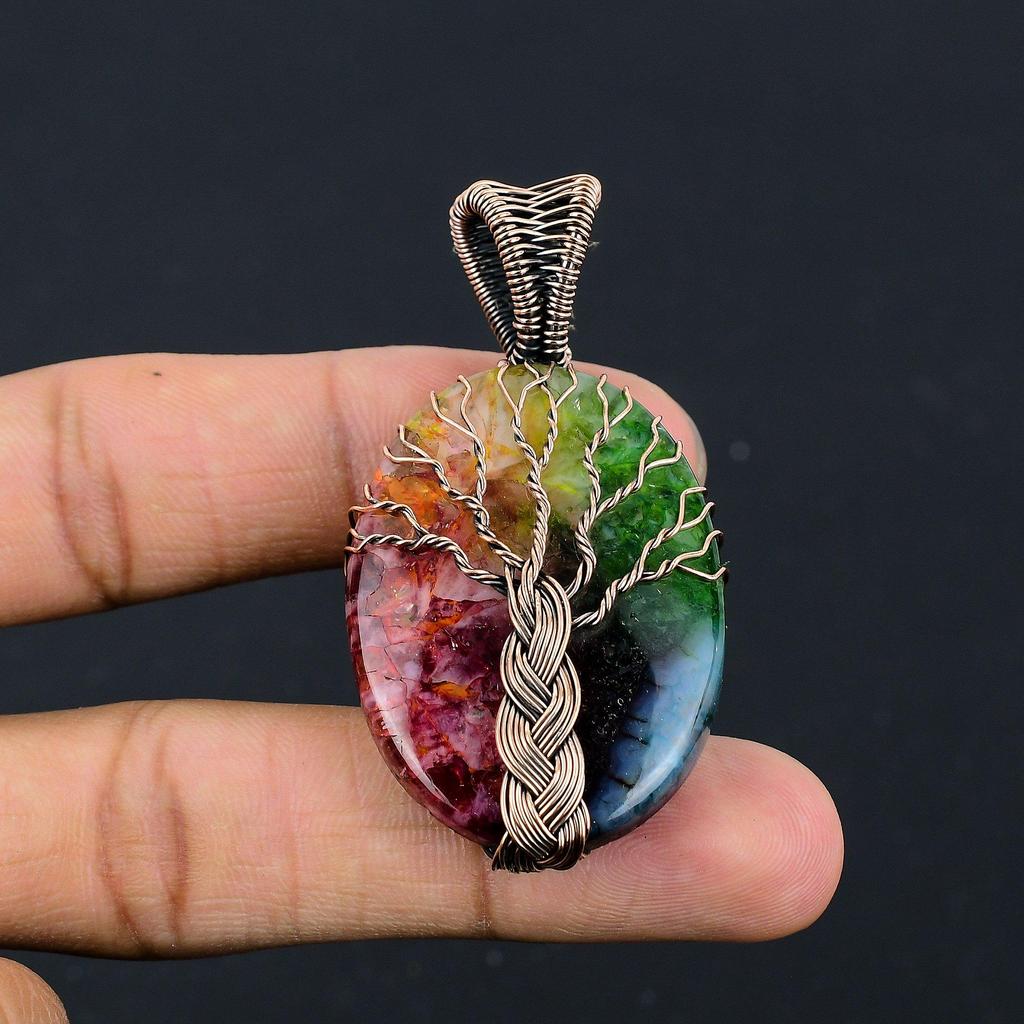 Древо Жизни Радужный Солнечный Кварц 999 Медная Проволока Обмотка Кулон, Ручная Работа Каменная Подвеска Украшения, Подарки Для Жены Новый Кулон