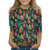 Детские топы с рукавом 3/4, повседневная футболка с рождественским принтом, пуловер с круглым вырезом