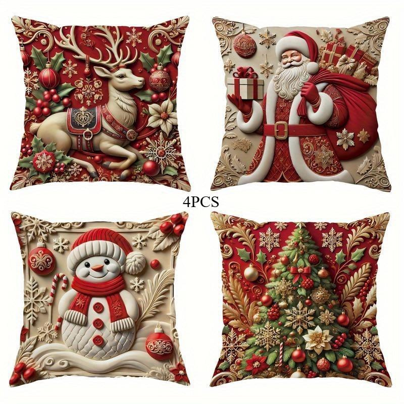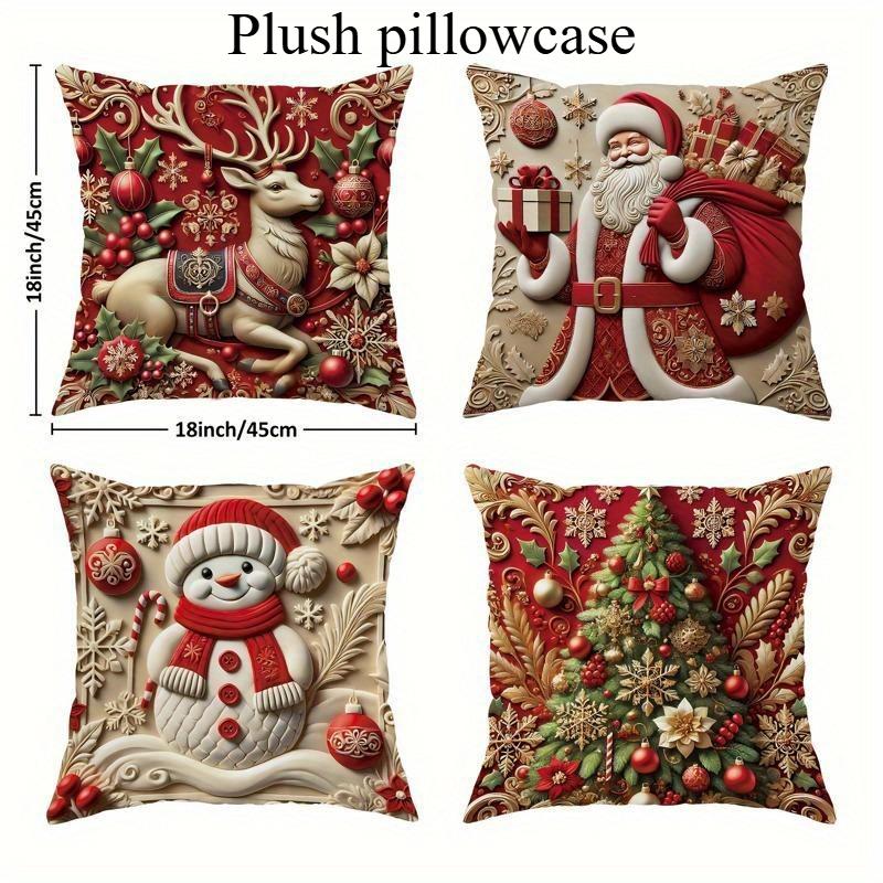 4 шт. Праздничная рождественская наволочка - Удобный короткий плюш, 17,7 x 17,7, Односторонняя печать, Застежка-молния, Машинная стирка