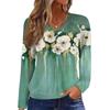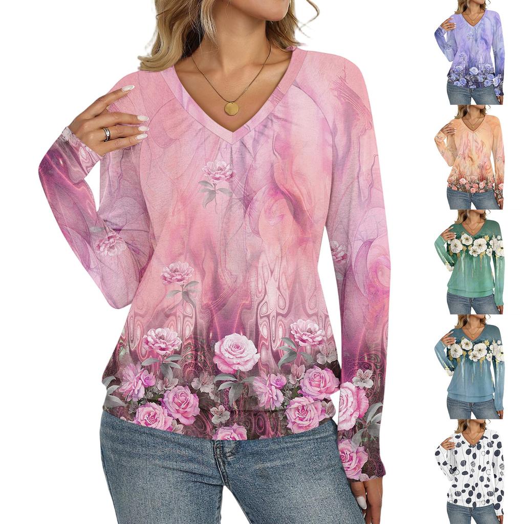 Женский повседневный модный топ с V-образным вырезом, рукавами реглан, плиссировкой и цветочным принтом, с длинным рукавом — купить товар онлайн с бесплатной доставкой до всему миру!