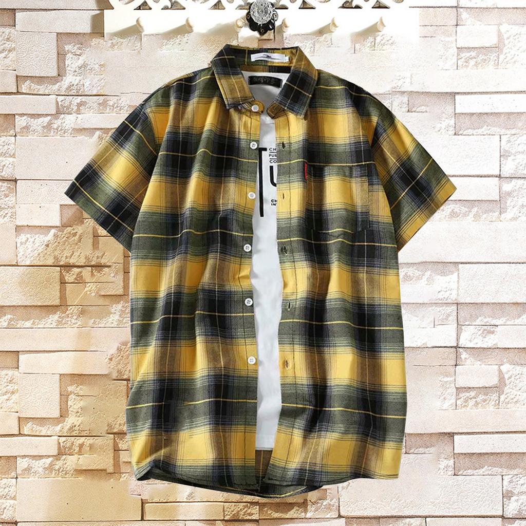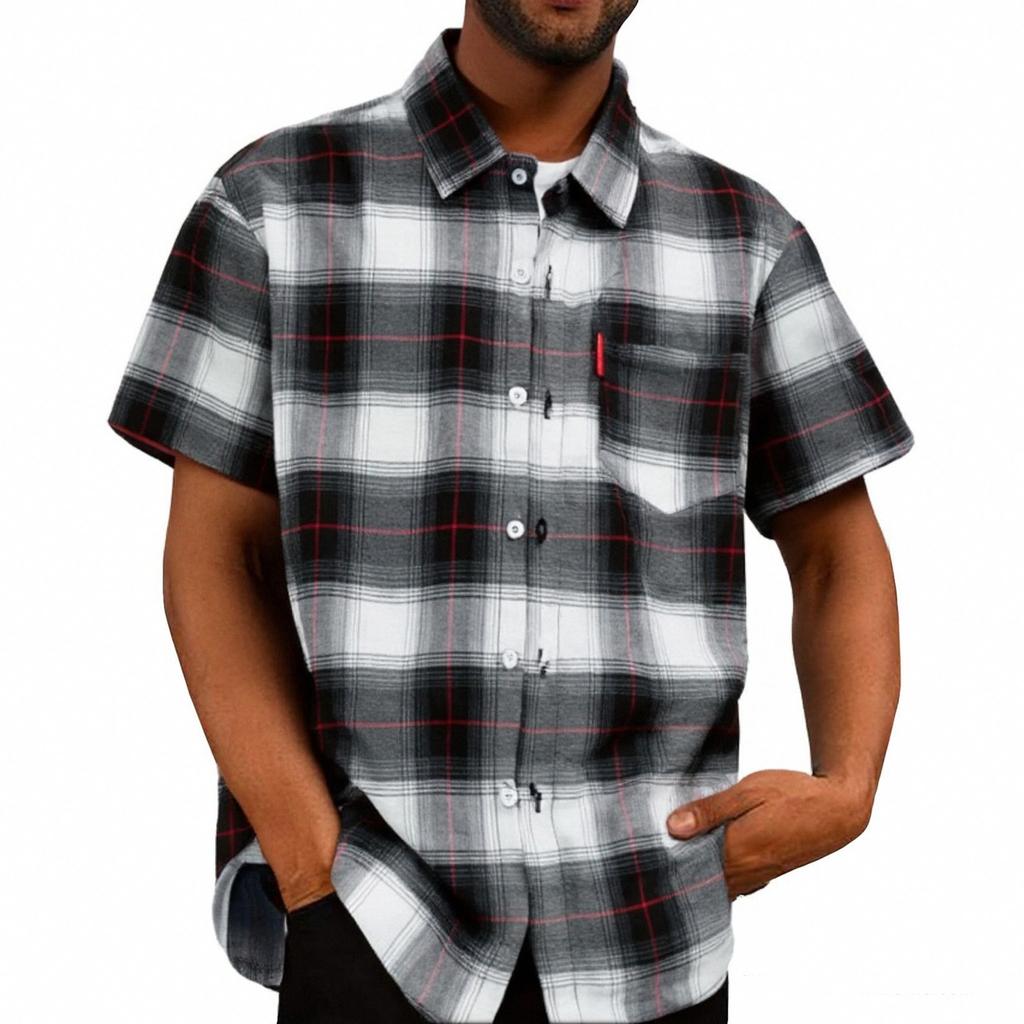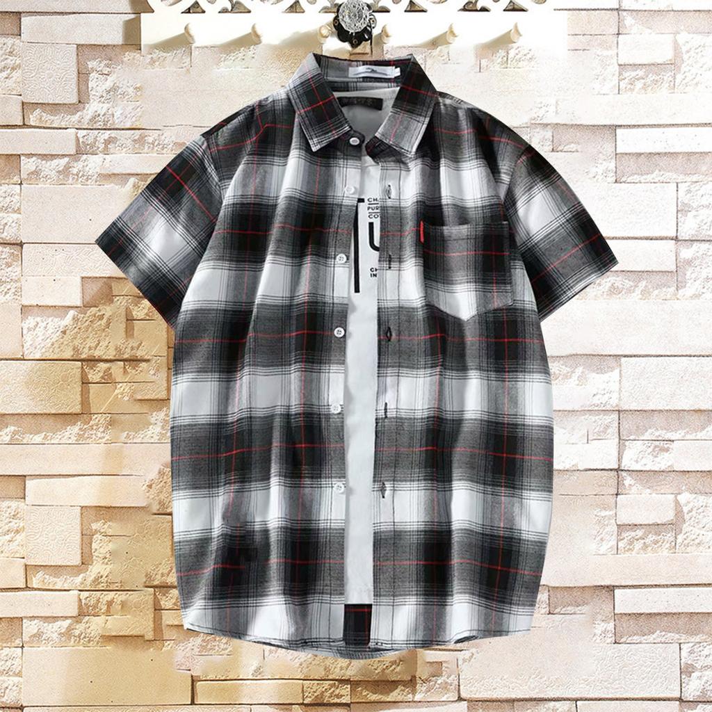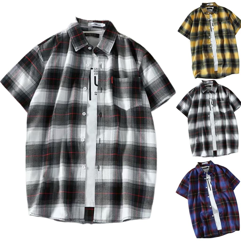 Мужская клетчатая рубашка, рубашка с коротким рукавом, летняя повседневная одежда
