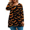 Женская мода Большой размер Круглый вырез Длинный рукав Повседневный Пуловер Топ с принтом на Хэллоуин Свободного кроя