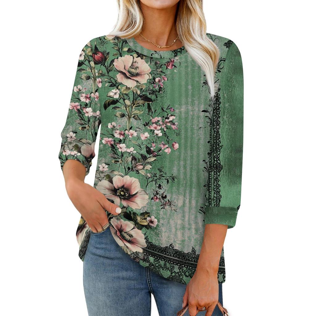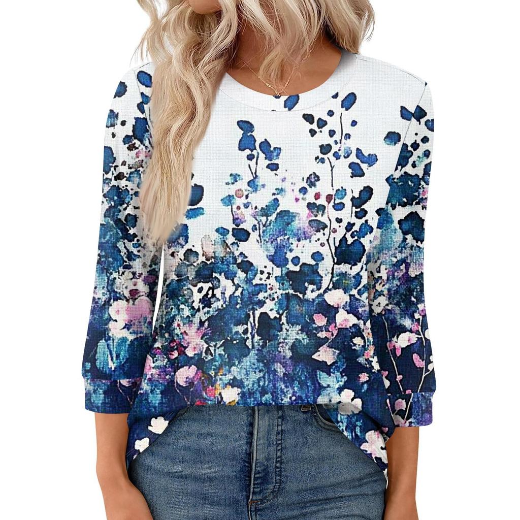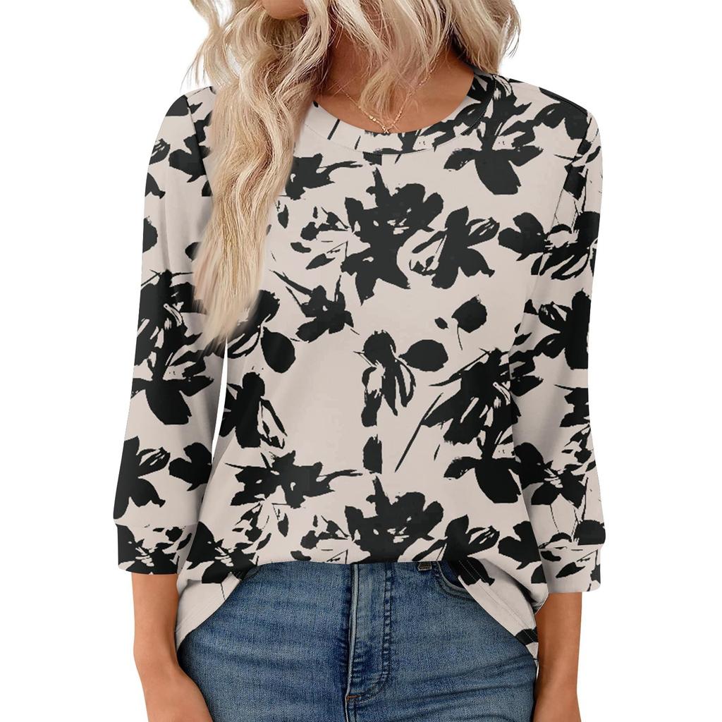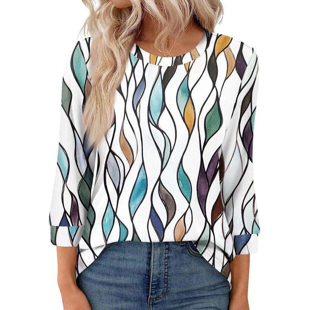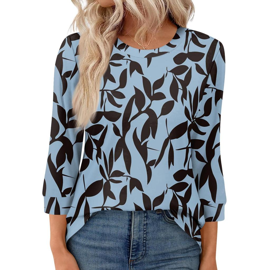 Женская модная повседневная свободная футболка с круглым вырезом и рукавами 3/4 с принтом, женский топ