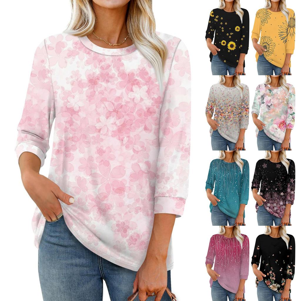 Женская модная повседневная свободная футболка с круглым вырезом и рукавами 3/4 с принтом, женский топ — купить товар онлайн с бесплатной доставкой до всему миру!