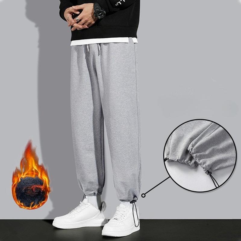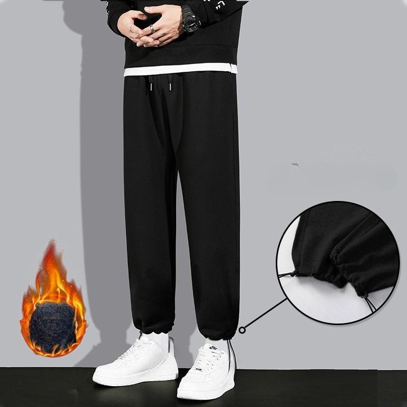 Мужские осенне-зимние больших размеров в корейском стиле, свободные спортивные штаны с манжетами, прямого кроя, повседневные, для бега, на флисовой подкладке, вязаные длинные штаны