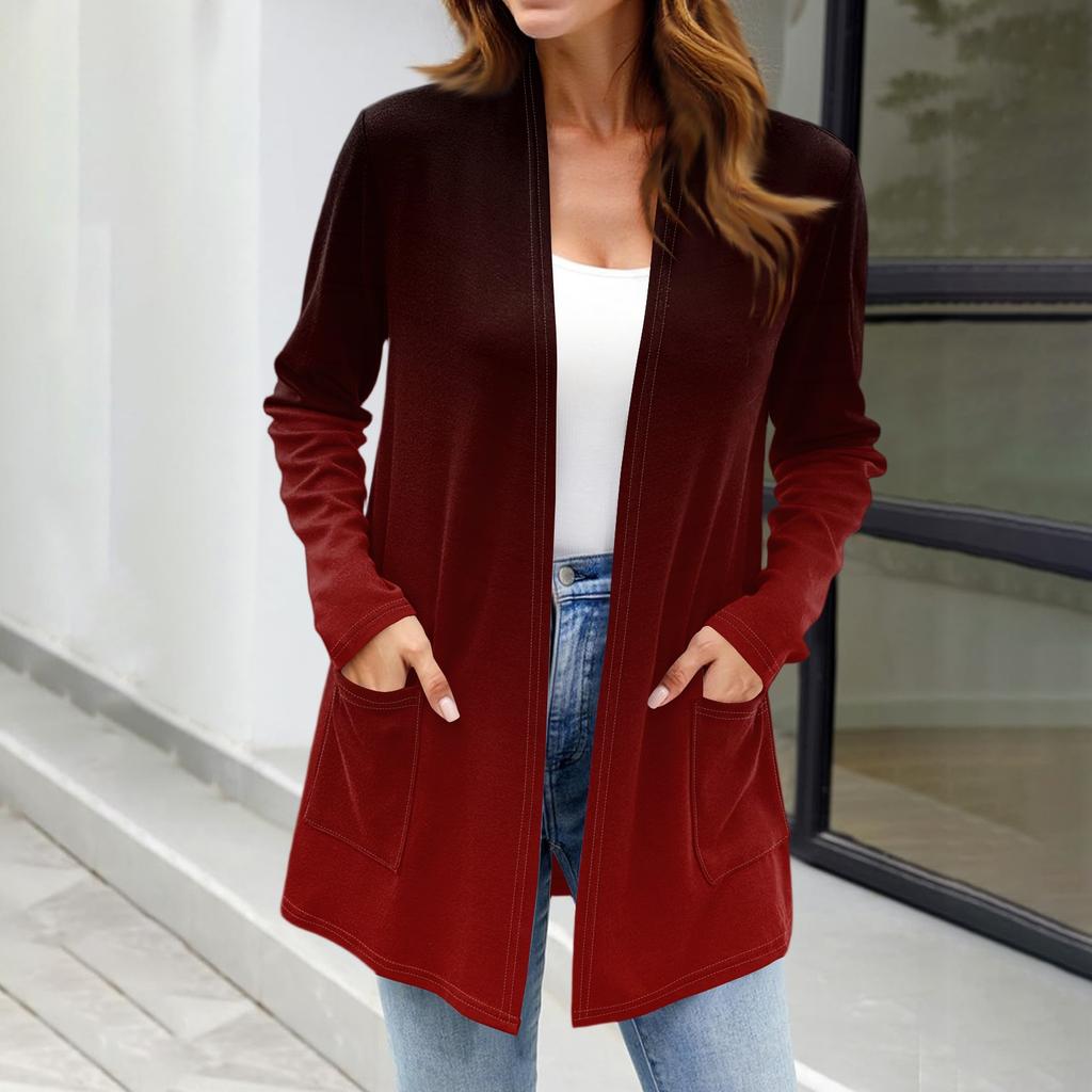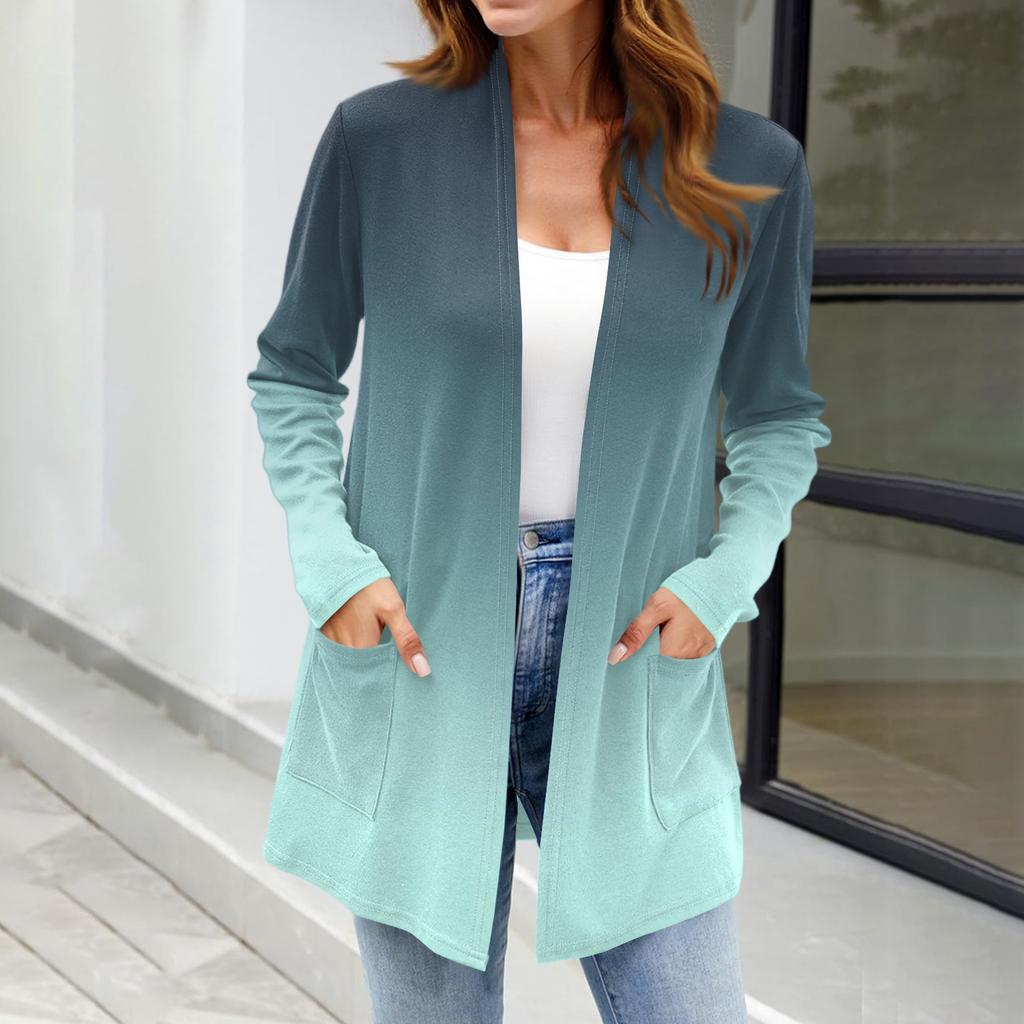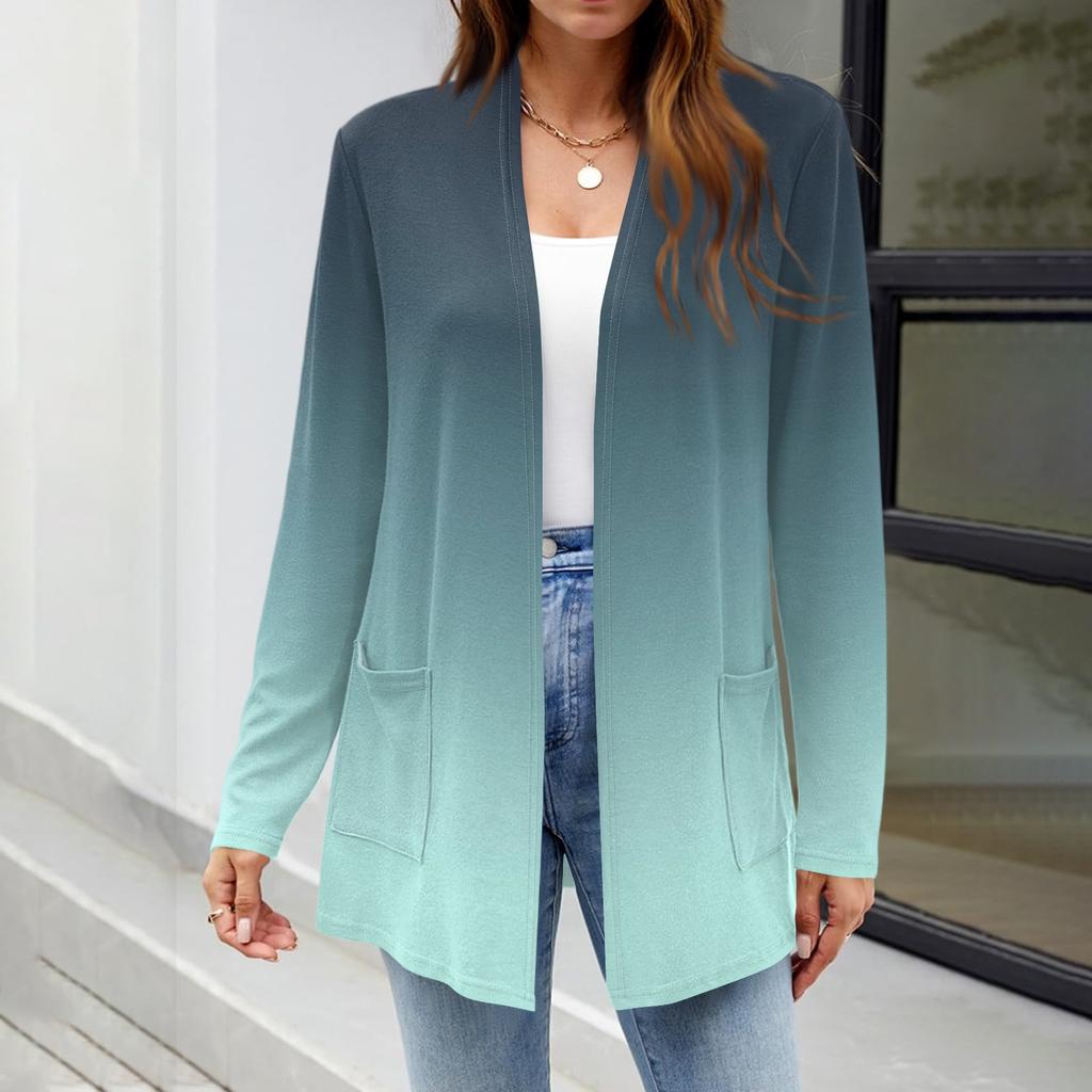 Женские легкие кардиганы с открытой передней частью, с длинными рукавами, повседневные, свободные, тонкие кардиганы с карманами