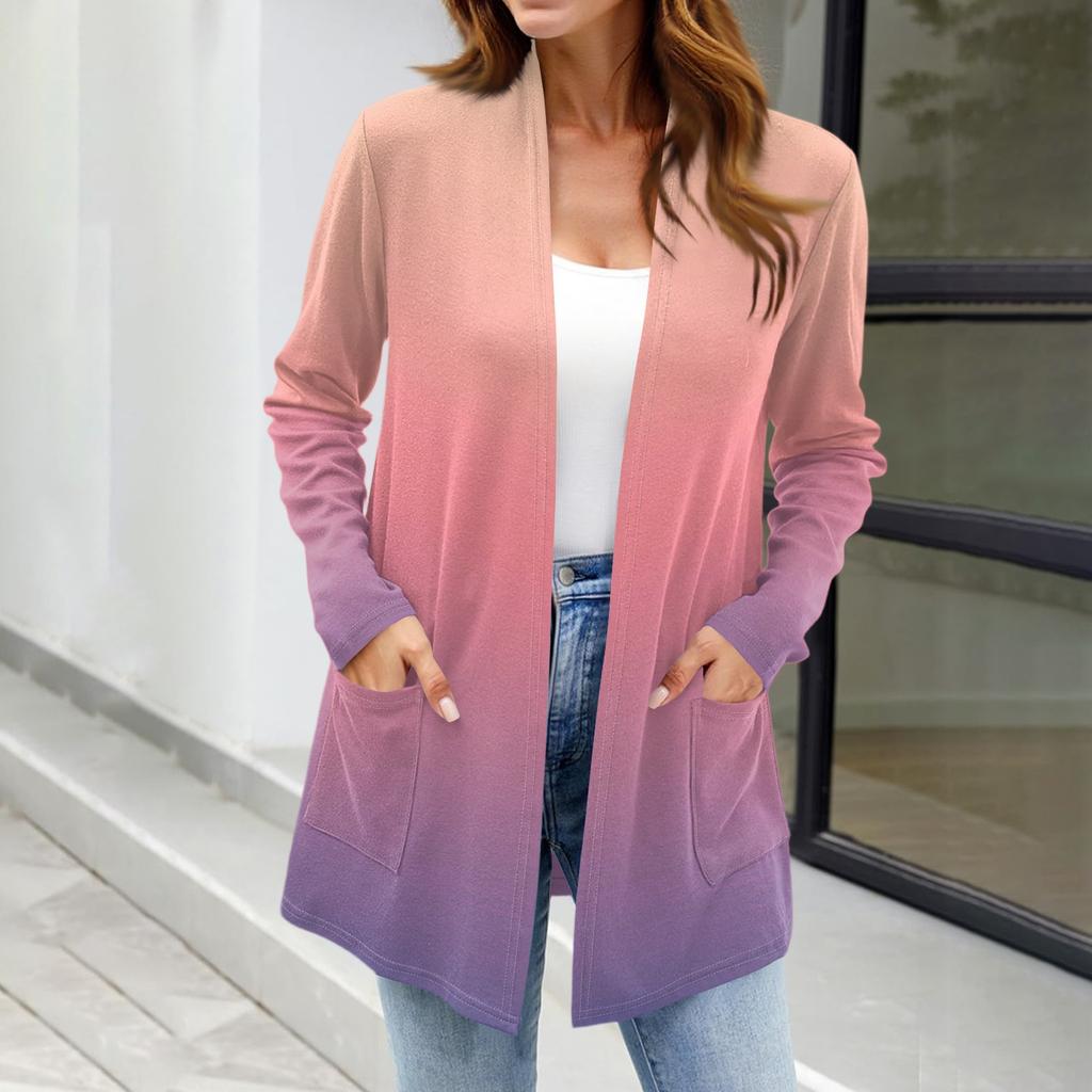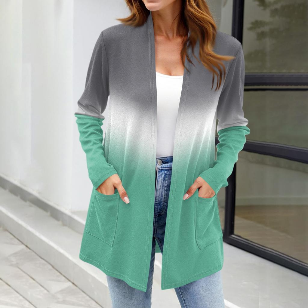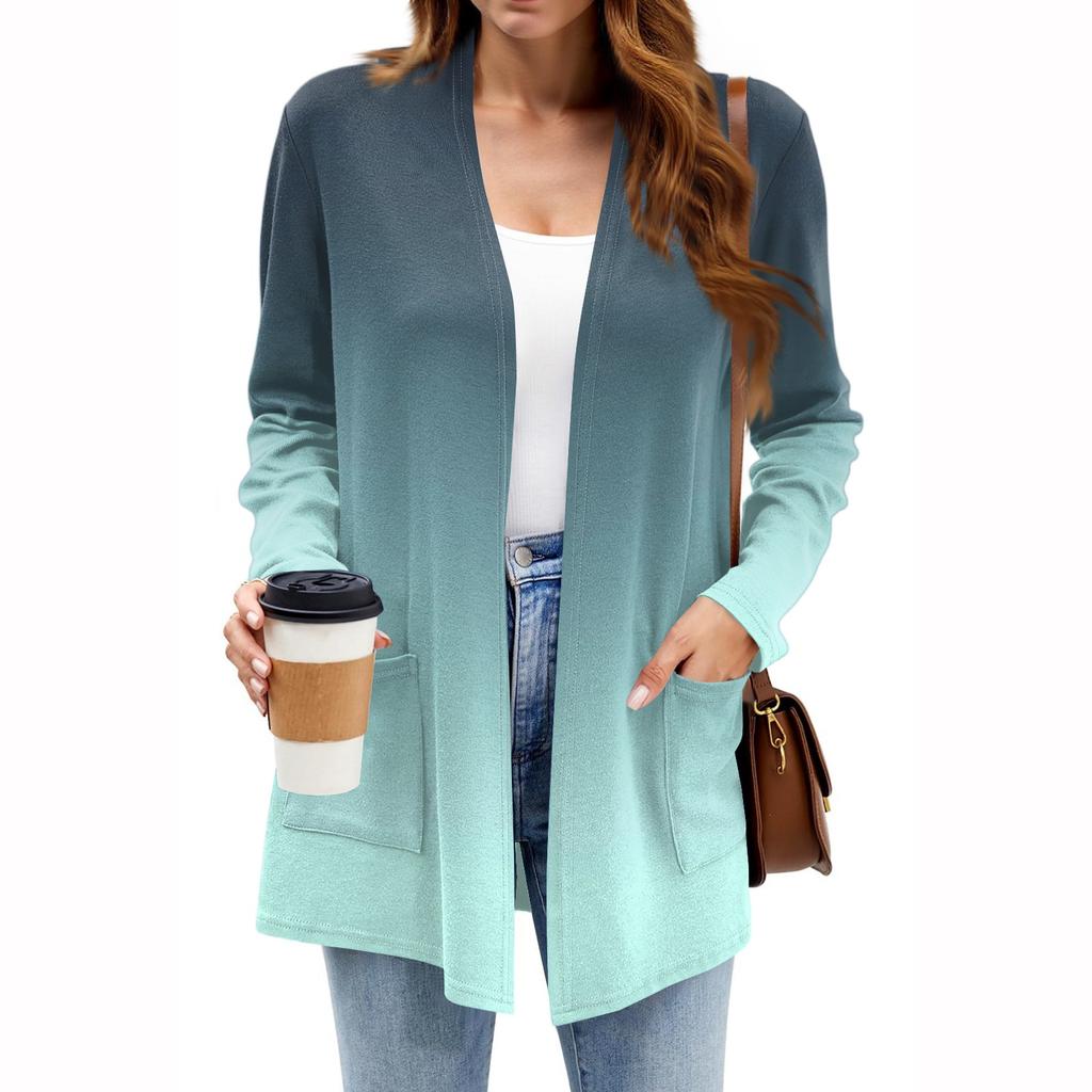 Женские легкие кардиганы с открытой передней частью, с длинными рукавами, повседневные, свободные, тонкие кардиганы с карманами