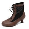 Ретро Косплей Летние Ботинки Женские Лоскутные Сетчатые Туфли Весна Кожа Виктория Массивный Каблук-рюмочка