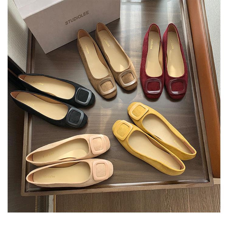 Версия из овчины~ Кожаные туфли-лодочки с французской квадратной пряжкой, женские новые туфли на плоской подошве с круглым носком, на один шаг, для通勤