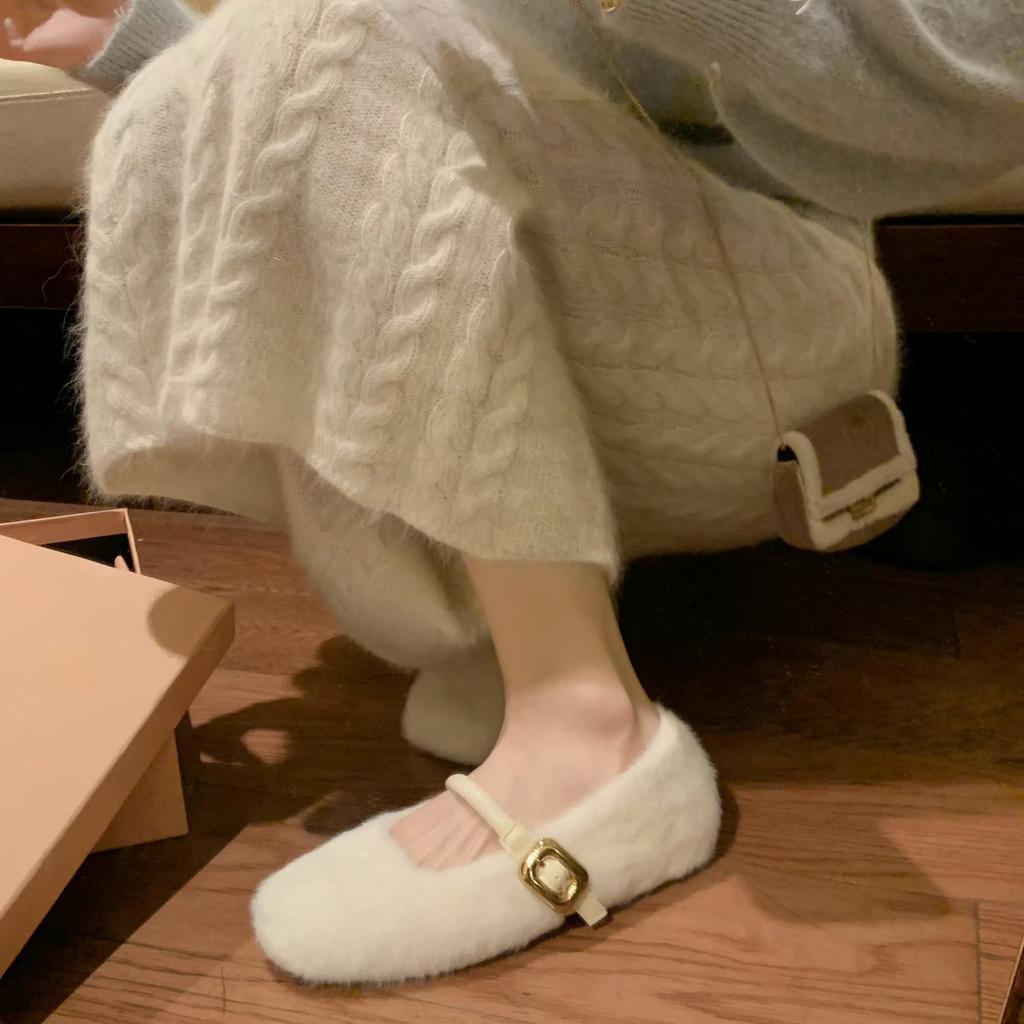 Шерстяная версия~ балетки с внутренней платформой, туфли Мэри Джейн, женские зимние кожаные хлопковые туфли, зимние ботинки