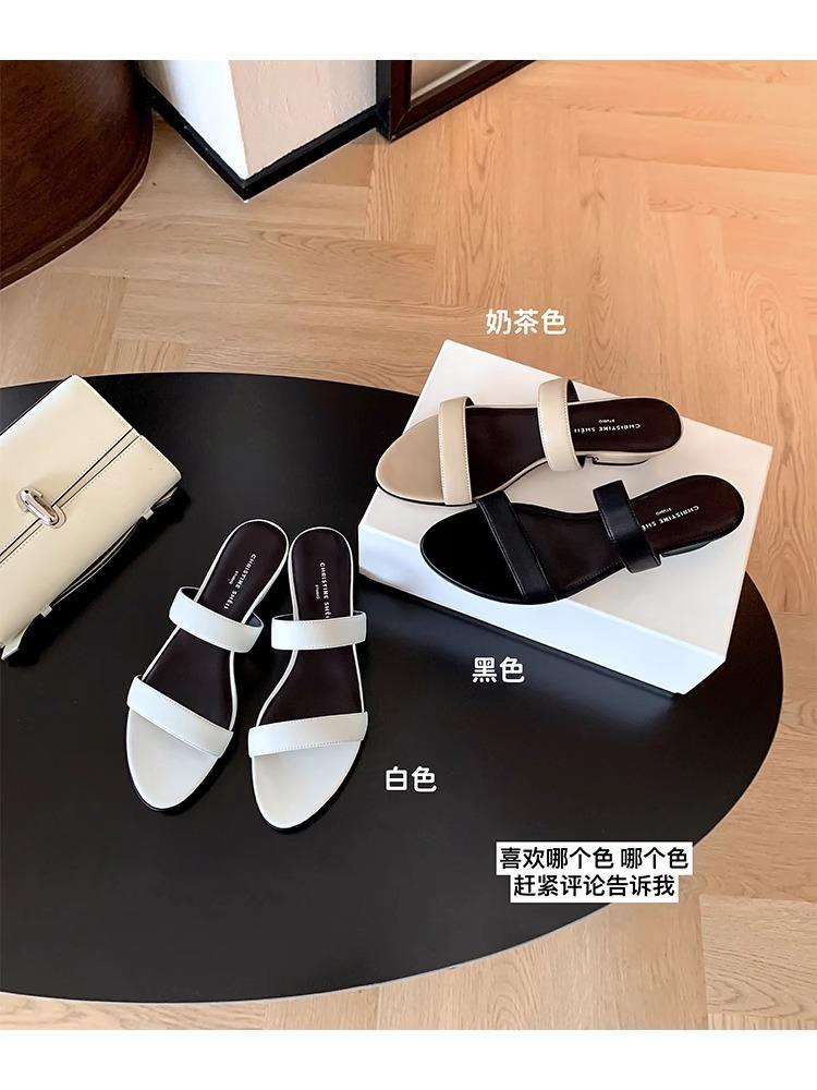Su Yinyin's same ultra-soft leather French one-line slippers with thick heels women's minimalist style round toe casual versatile sandals