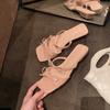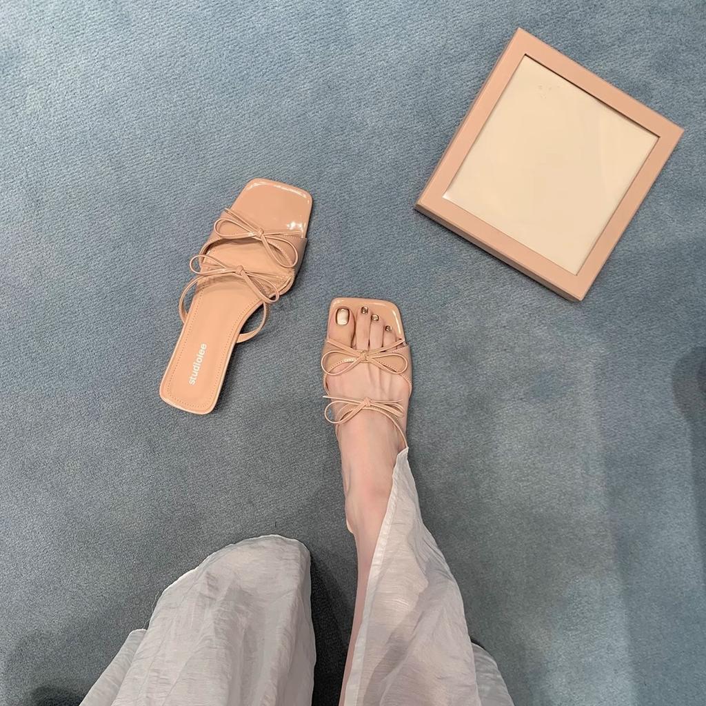Grape mother has the same temperament square head double bow with versatile sandals women's summer French casual low-heeled slippers