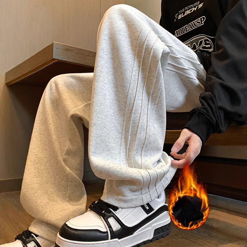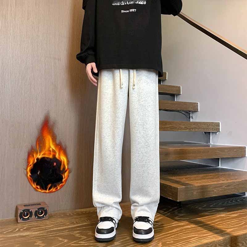 Мужские осенне-зимние флисовые брюки прямого кроя, весенне-осенние, в американском стиле, с боковой полосой, свободные спортивные повседневные брюки