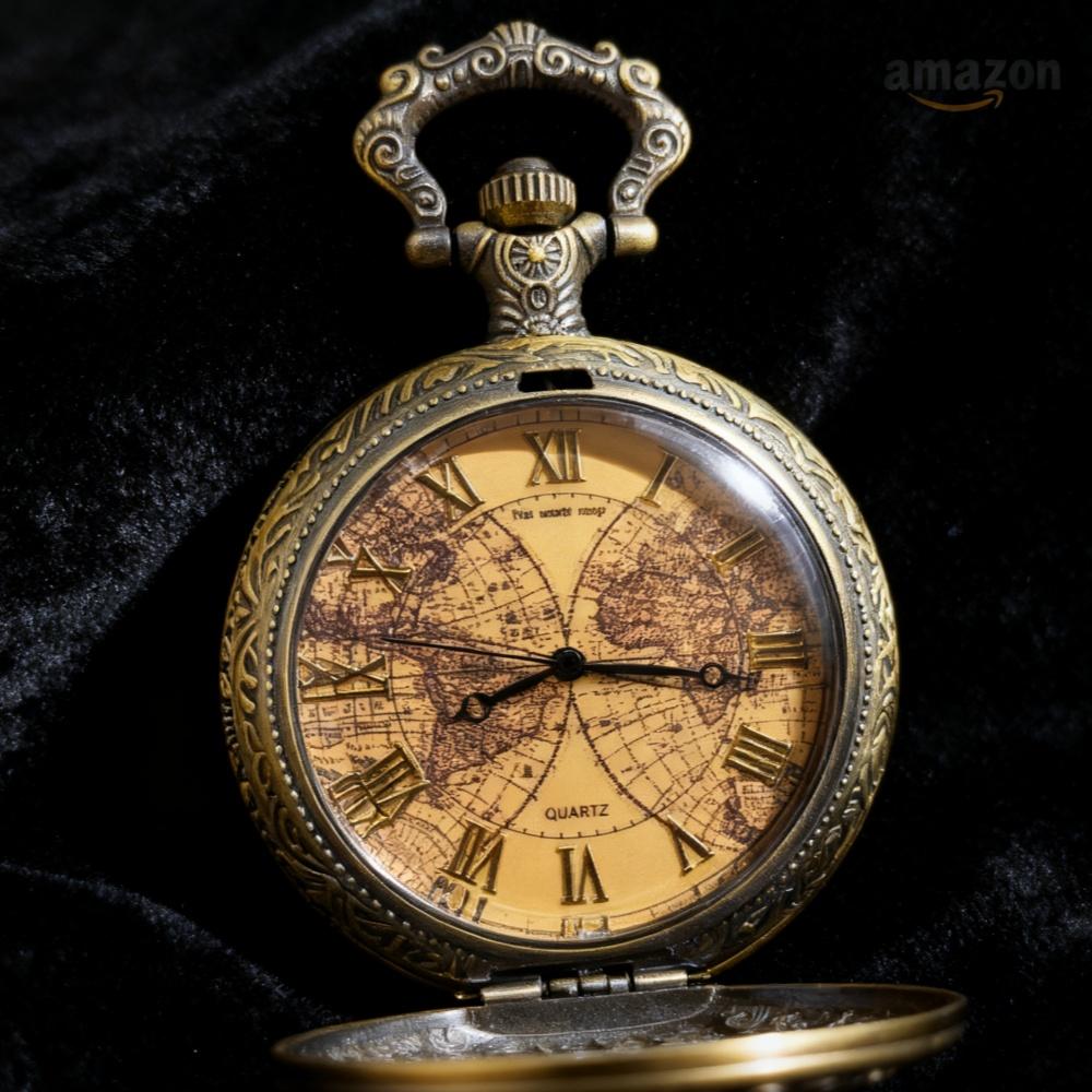 Карманные часы цвета чая, с двойным узором «Земля», унисекс, повседневные, кварцевые, в стиле ретро.