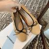 Версия из высококачественной коровьей кожи~ Туфли-лодочки Xiaoxiangfeng с бантом, с открытым верхом, на плоской подошве, женские, на мягкой подошве, в сказочном стиле, с круглым носком, балетки