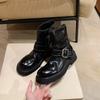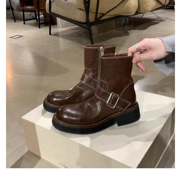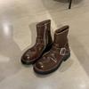 Виноградная мать те же ретро круглый носок толстый каблук ботинки-локомотивы темперамент универсальный ремень с пряжкой боковая молния полусапожки женские осень и зима