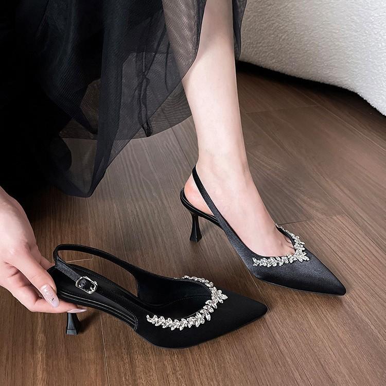 Босоножки на высоком каблуке женские лето 2025 новые сумка голова пустой острый носок каблук-рюмочка французские стразы тонкий каблук телесные туфли