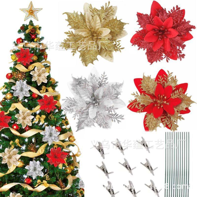 Рождественский цветок Рождественские украшения Венок Рождественская елка Золотой блеск Пластиковый цветок Лента Зажим Проволока