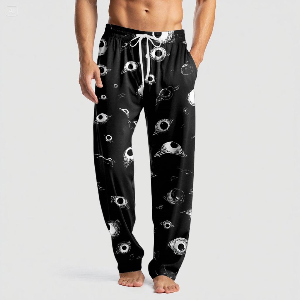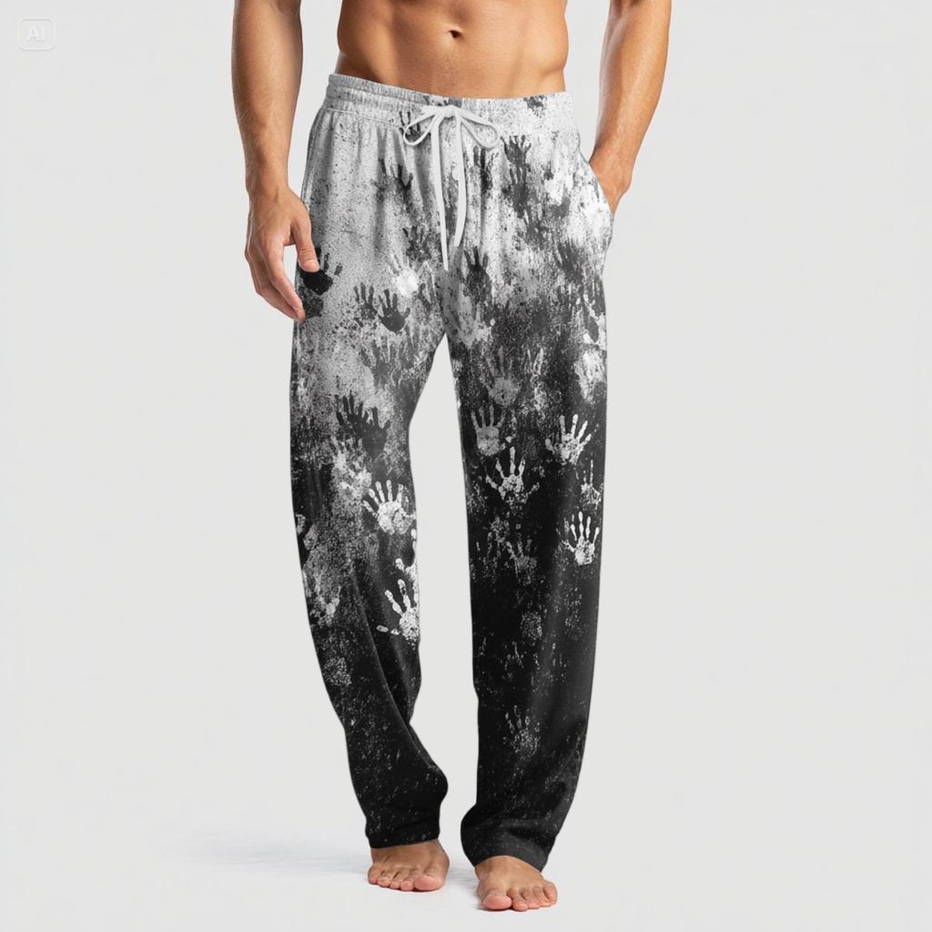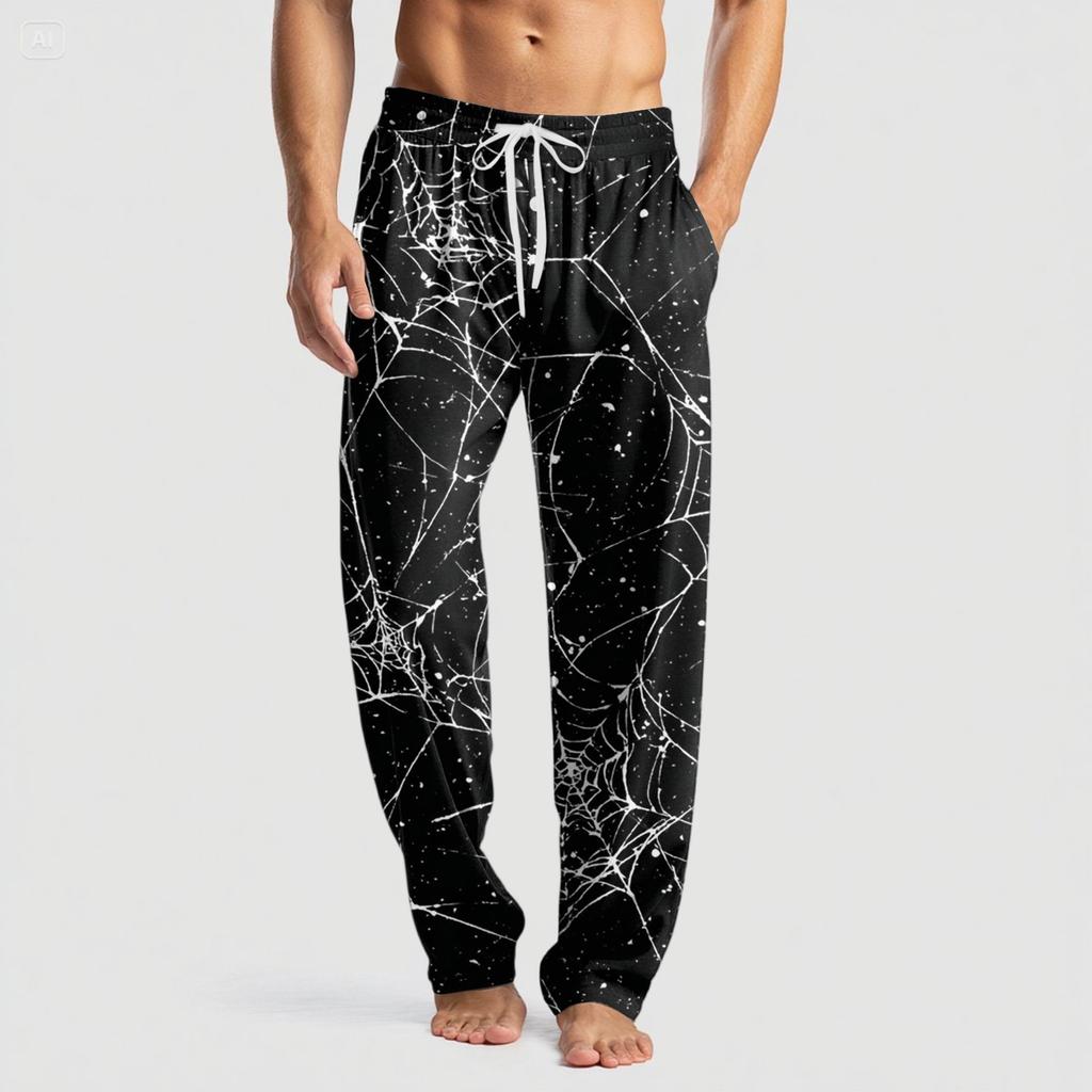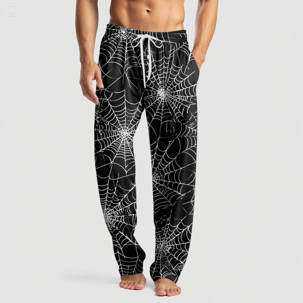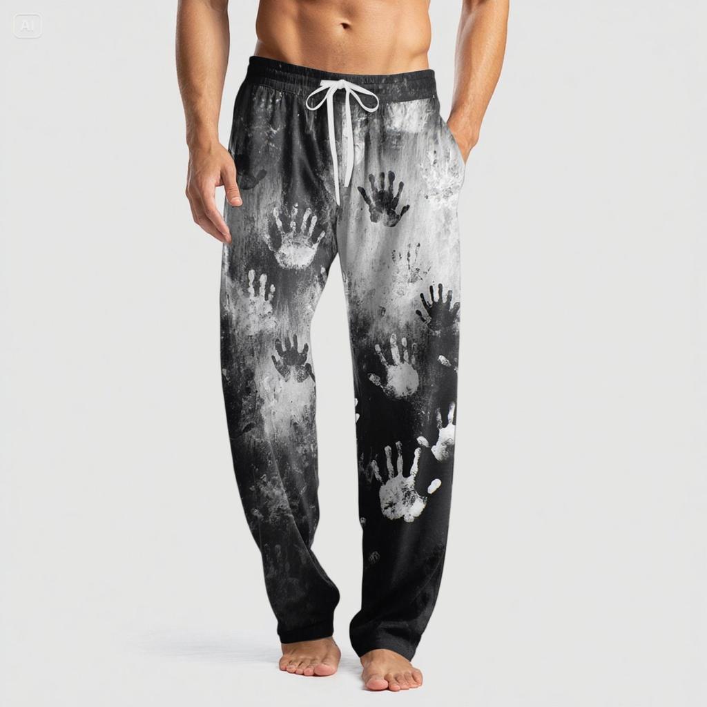 Мужские вязаные повседневные брюки с карманом и принтом на Хэллоуин, пижамные брюки