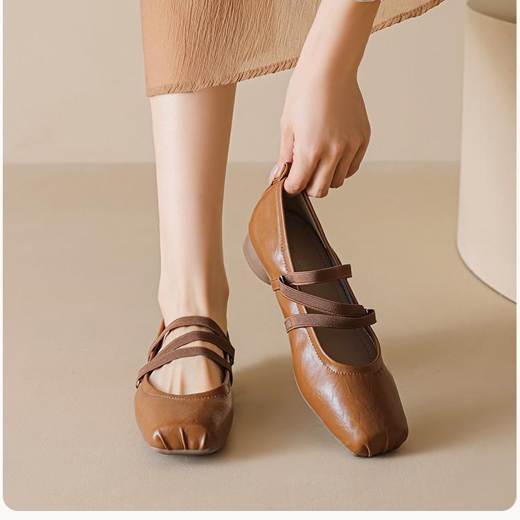 Французские туфли-балетки Мэри Джейн на высоком каблуке, с квадратным носком, универсальные, грубые, женские, ретро, нишевые, с перекрестным ремешком, ленивые, на одной педали, одинарные
