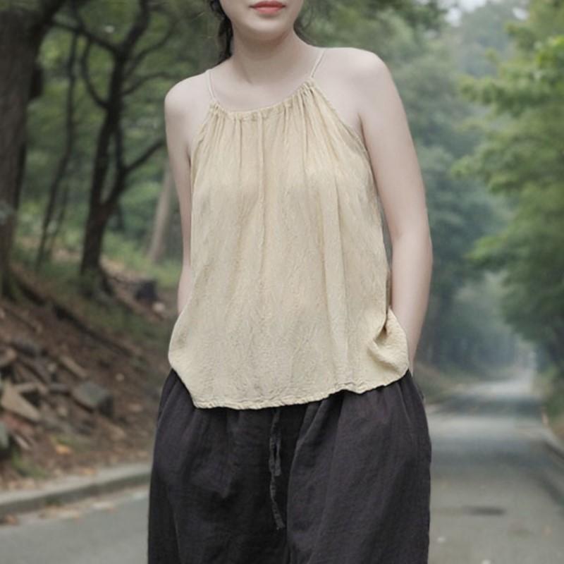 Johnature Женские винтажные однотонные летние бежевые желтые мягкие женские топы
