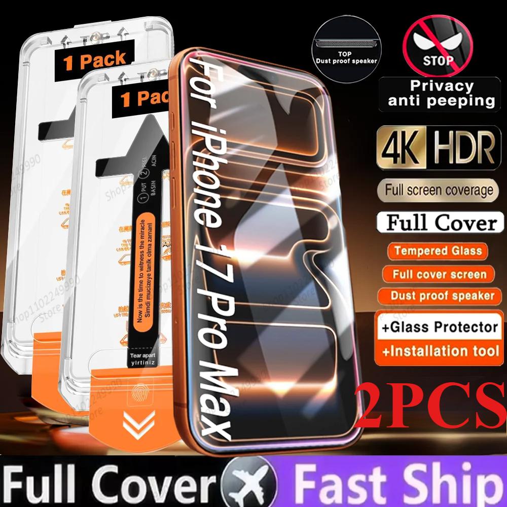 2 шт. 8k hd закаленное стекло для iphone 17 12 13 16 pro max air 16e 14 15 plus защитное стекло для экрана простая установка коробка без пыли